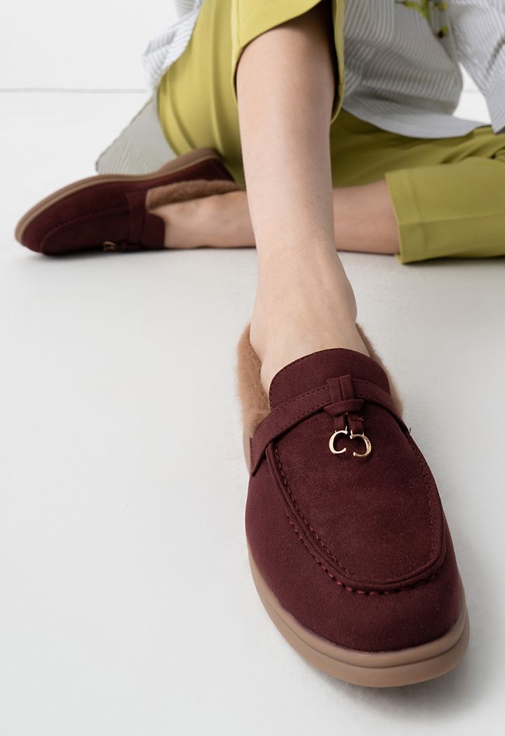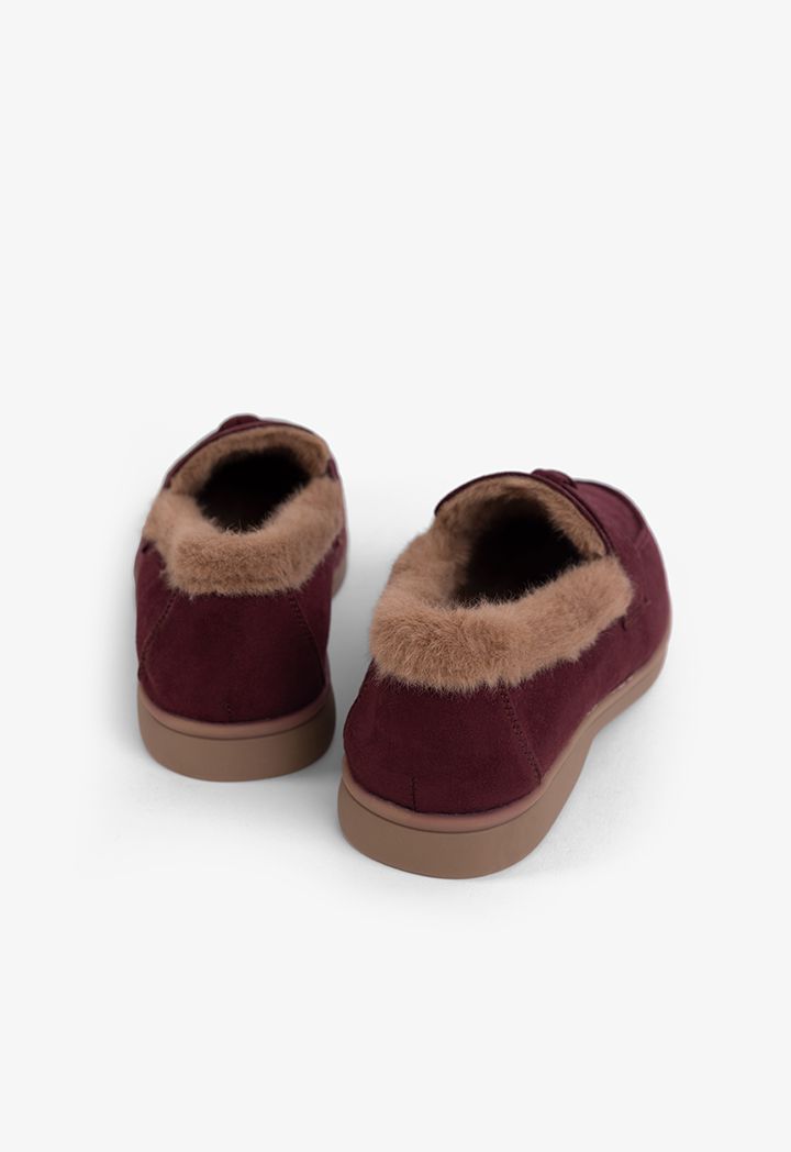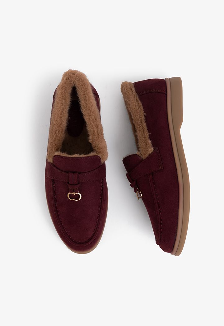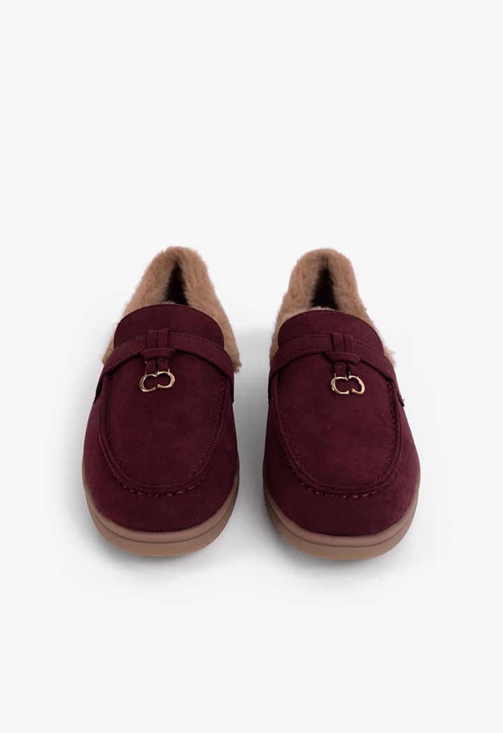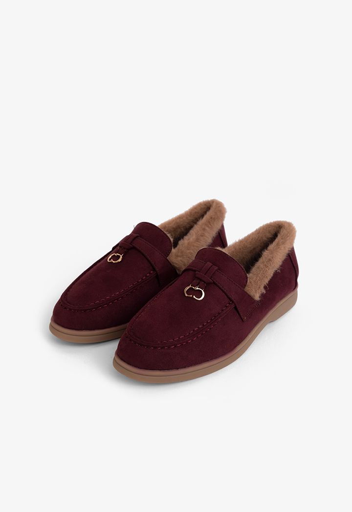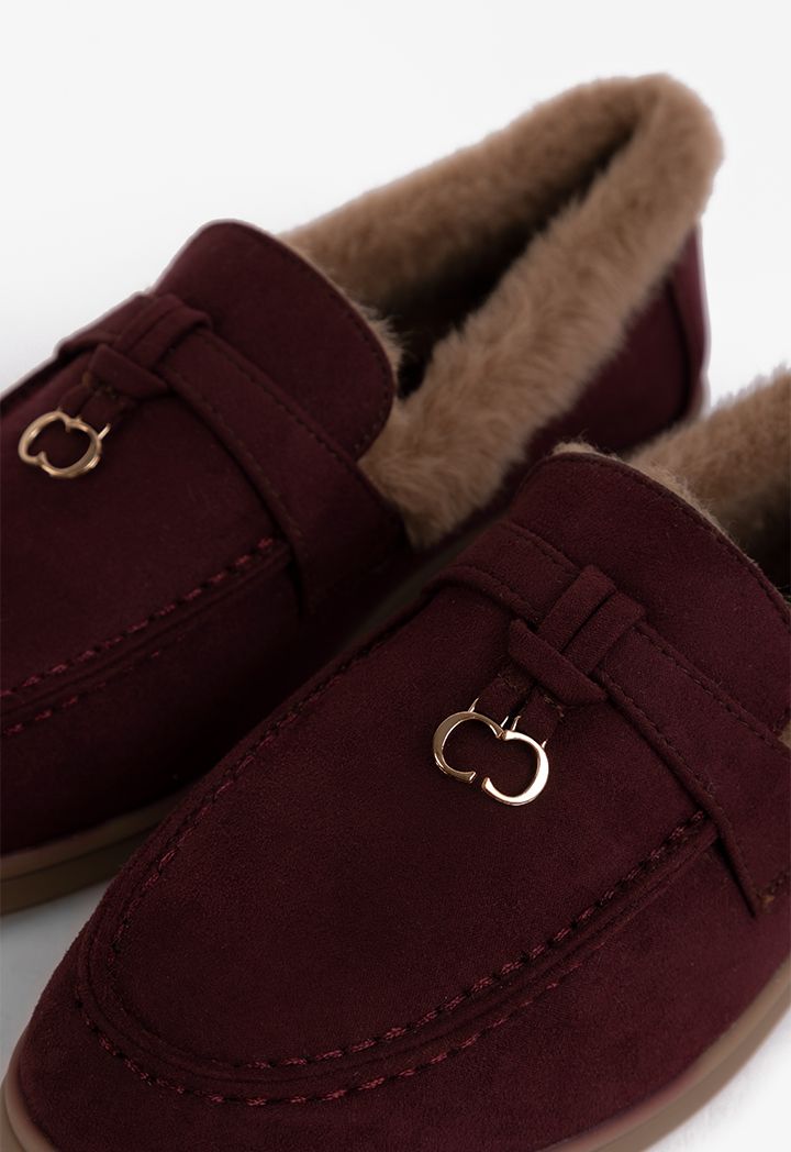 Keep your feet warm in style, featuring this classy pair of loafers that has an inner lining of faux fur.