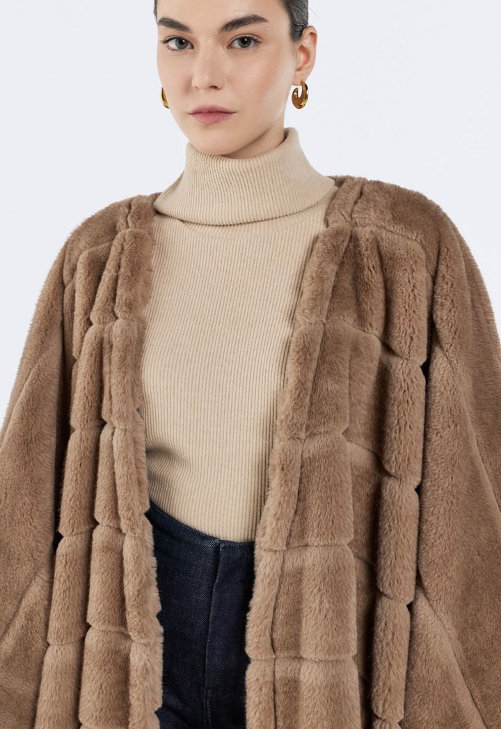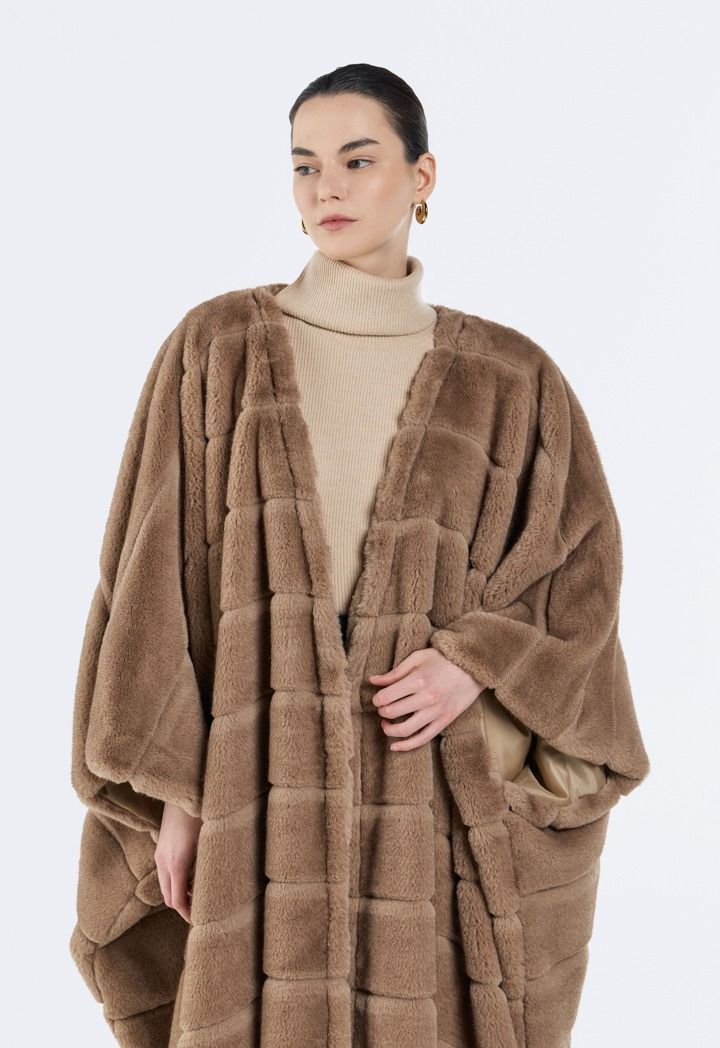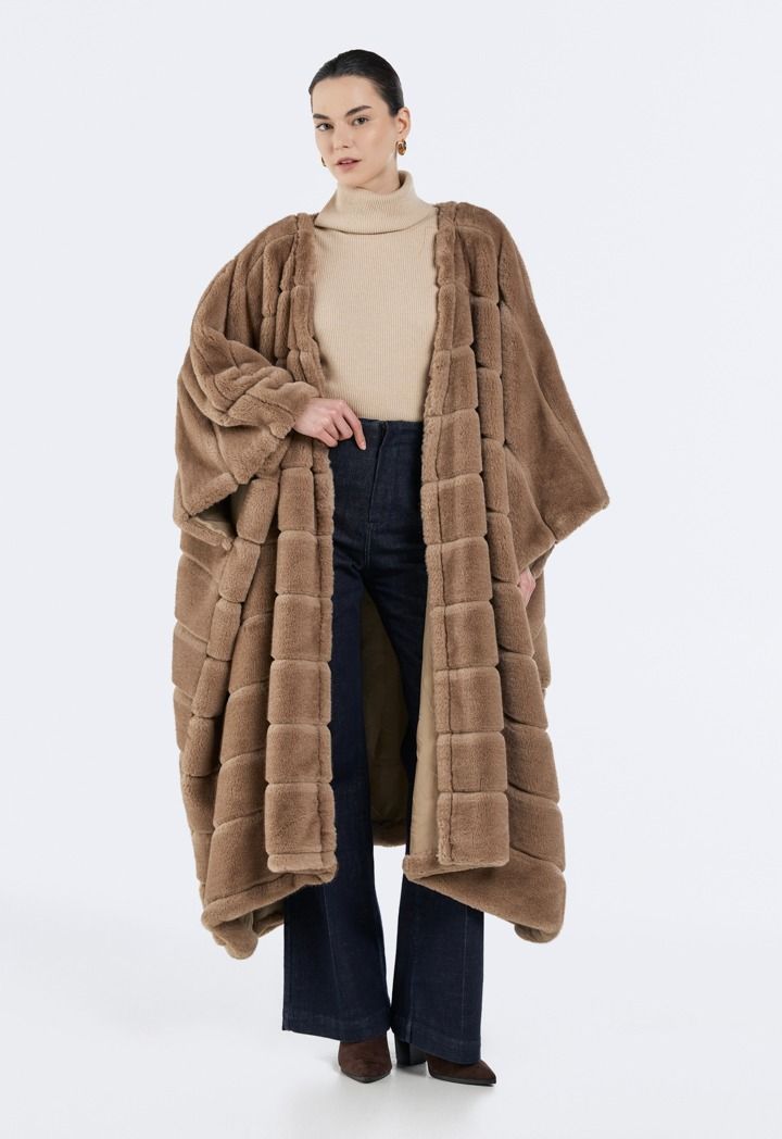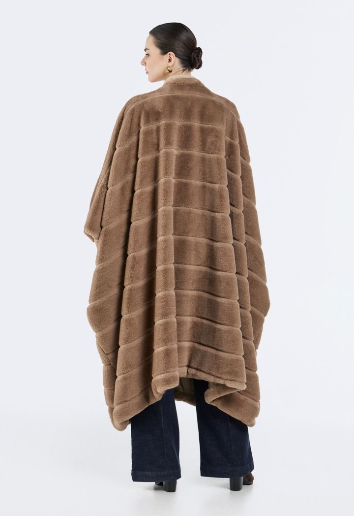 This faux fur poncho with inner lining will keep you warm on the coldest winter days.