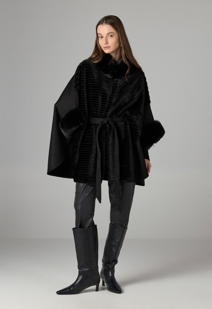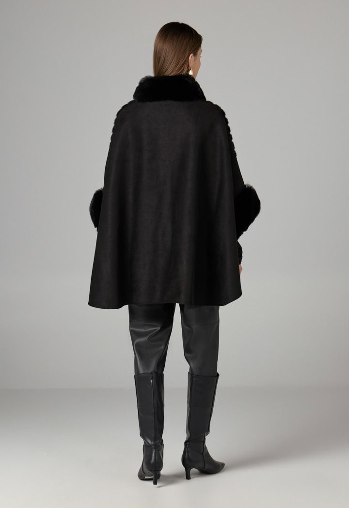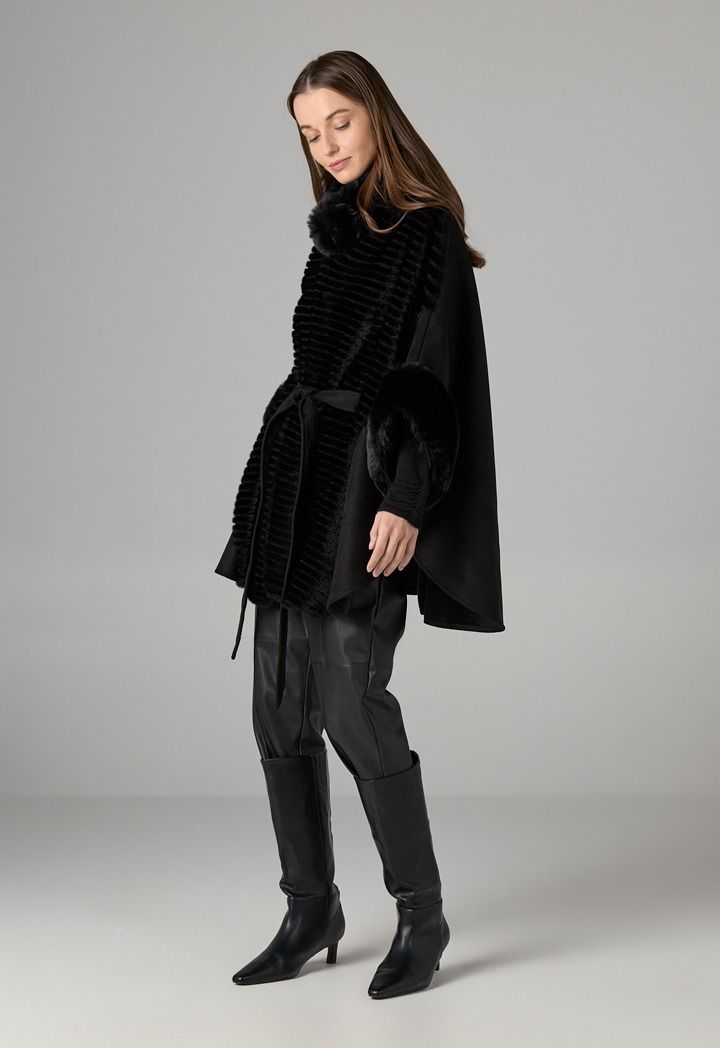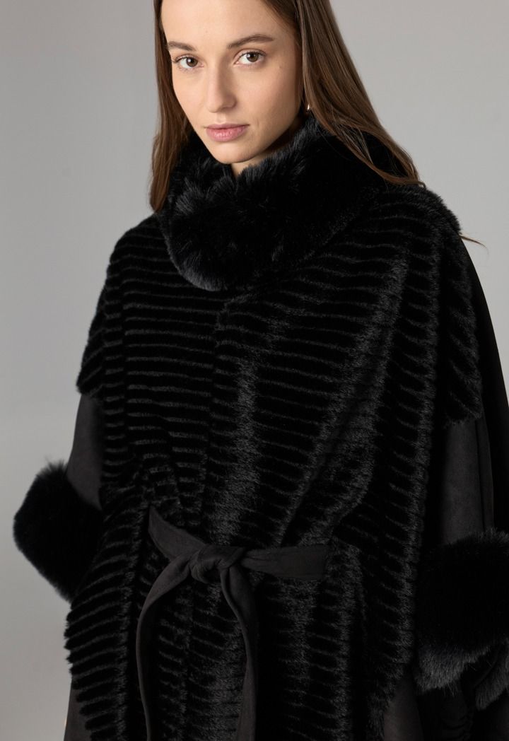 Unique poncho combining suede and faux fur for an elegant and prestigious look.
