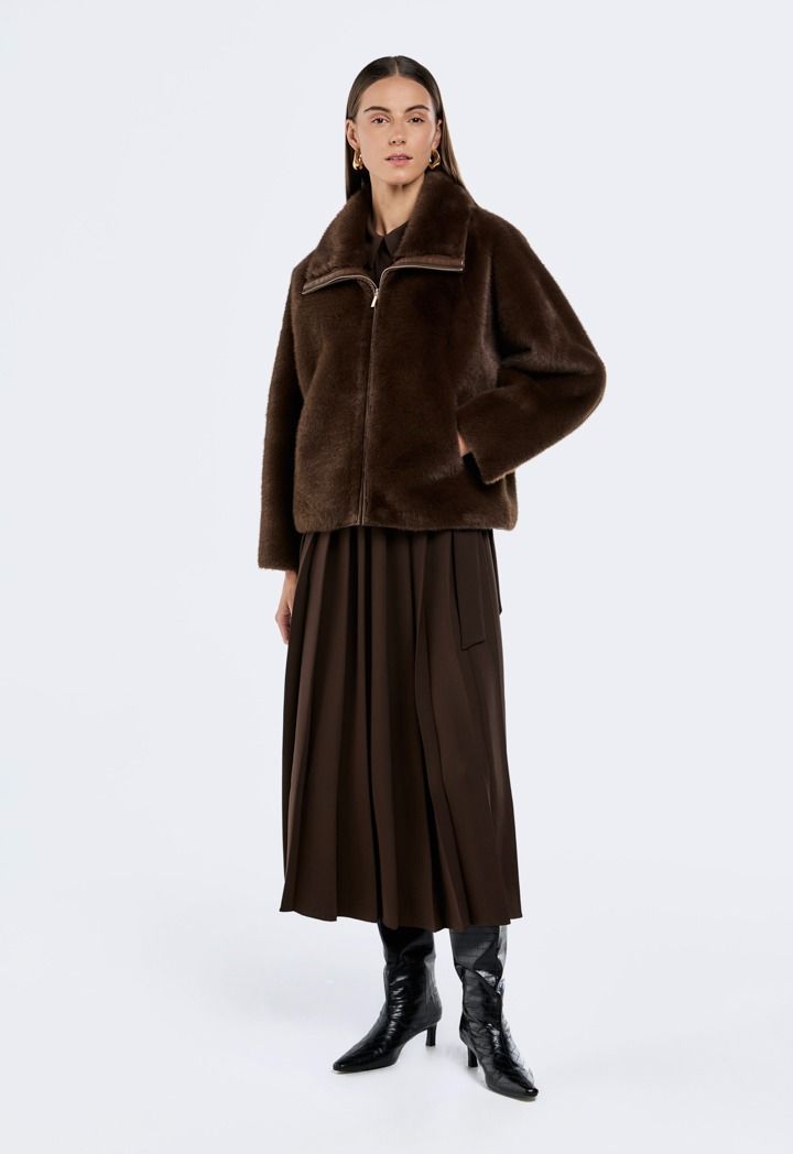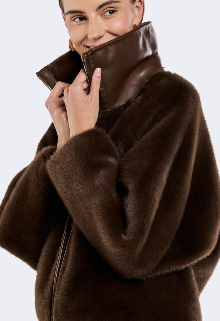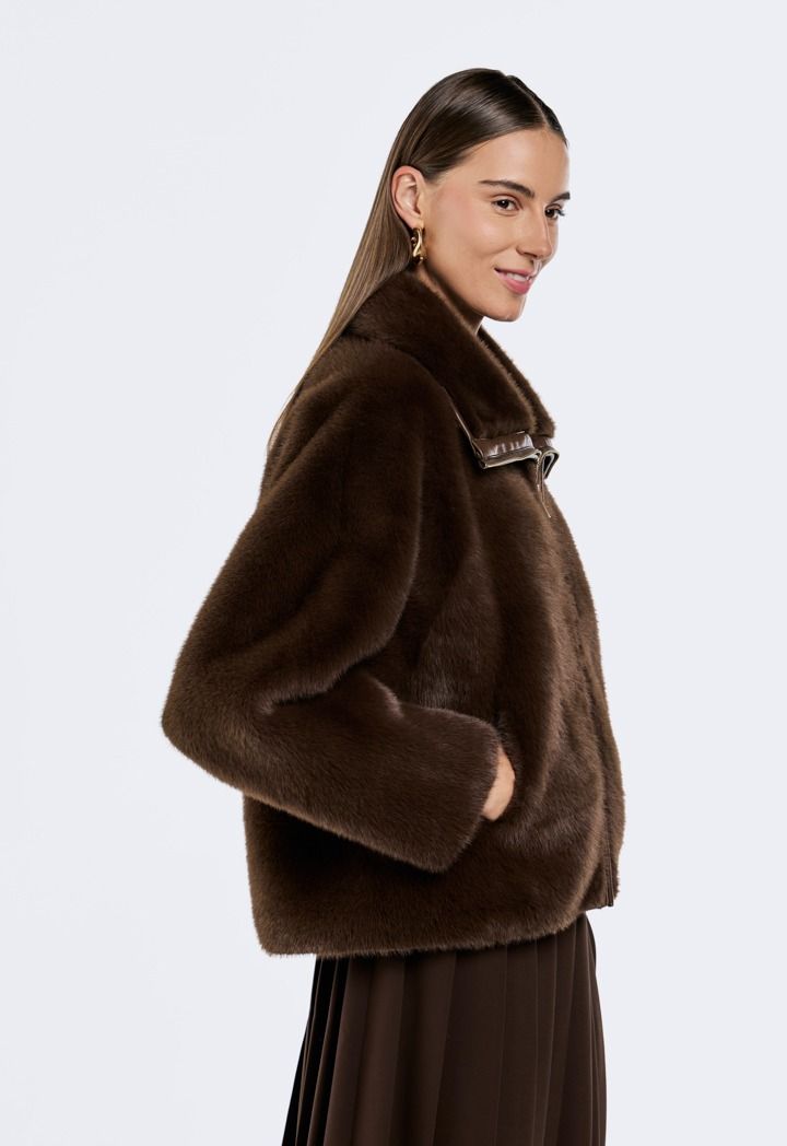 Wrap yourself in cozy luxury with the Faux Fur Zip-Up Jacket.