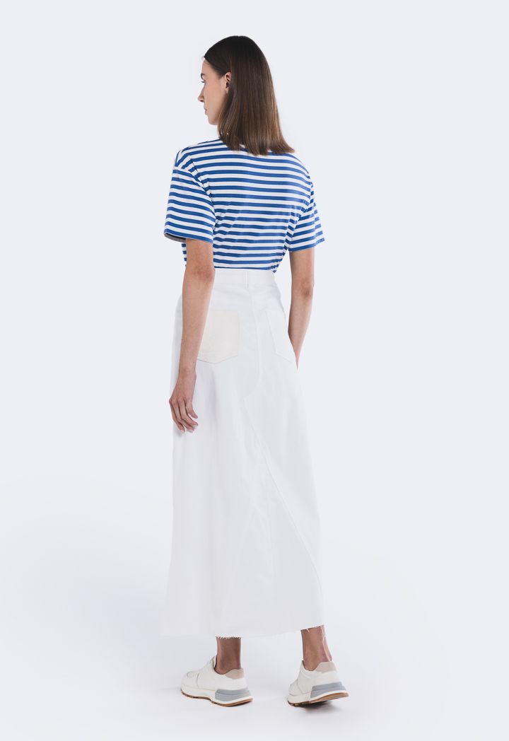 Faux Leather Pocket Denim Skirt |