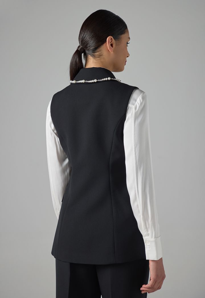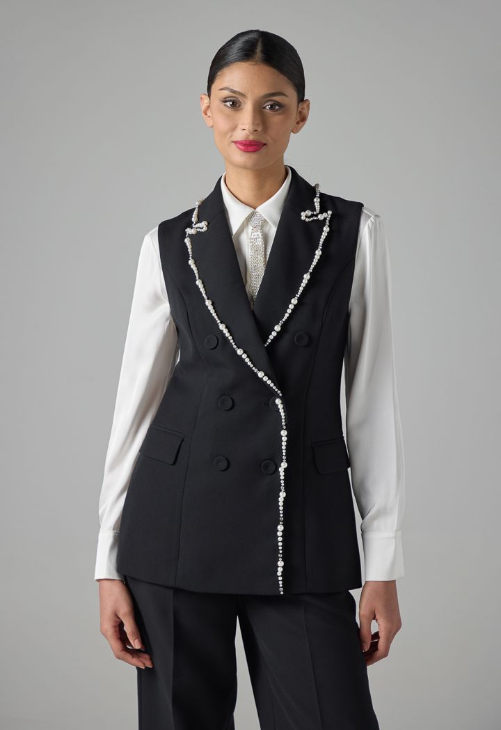 Faux Pearl Crystal Embellished Sleeveless Gilet