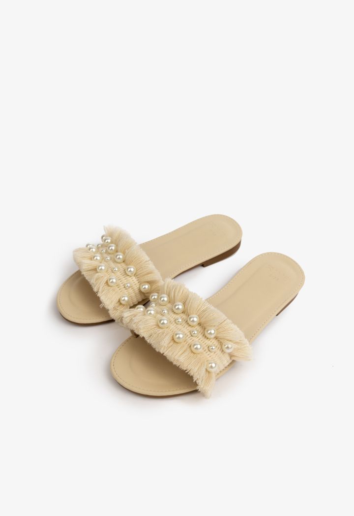 A stylish yet comfortable pair of flat slides, they would made the perfect pair for the summer days or outings to the beach.