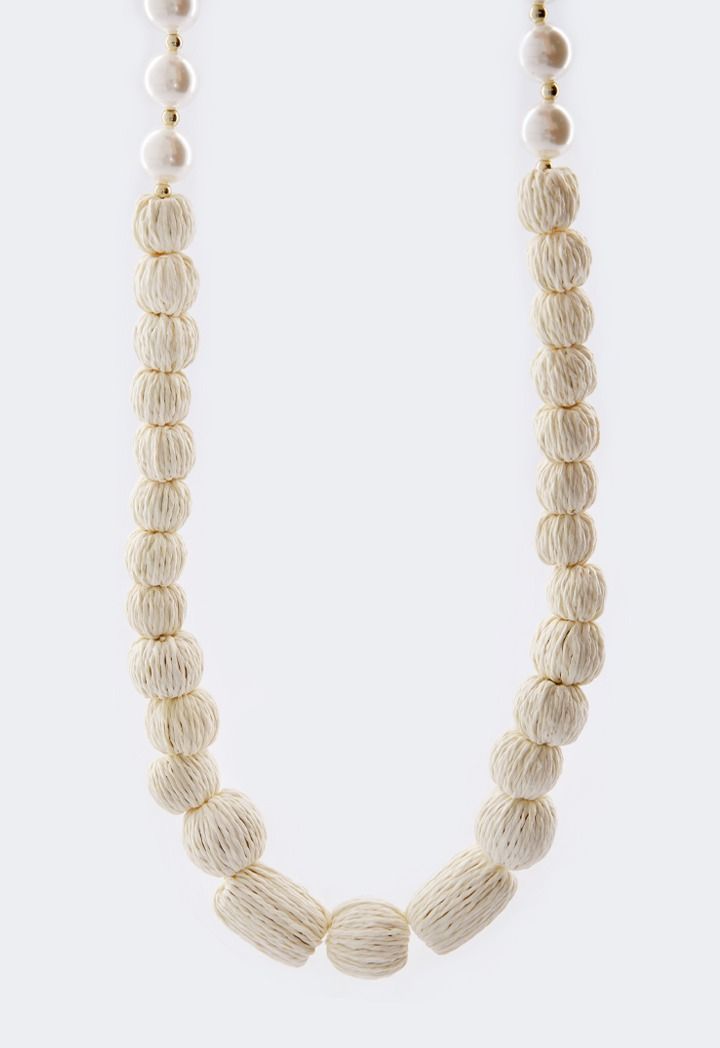 A necklace that is sure to steal the show of your basic look, thanks to its faux pearls wrapped thread design.