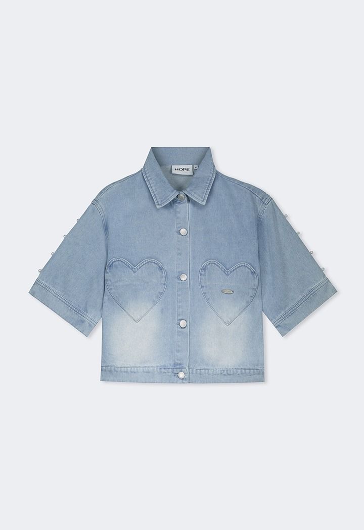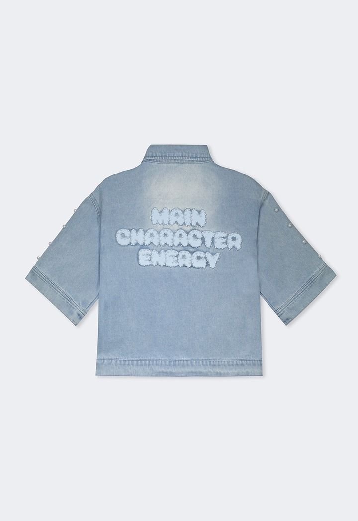 Faux Pearls Embellished Denim Jacket |