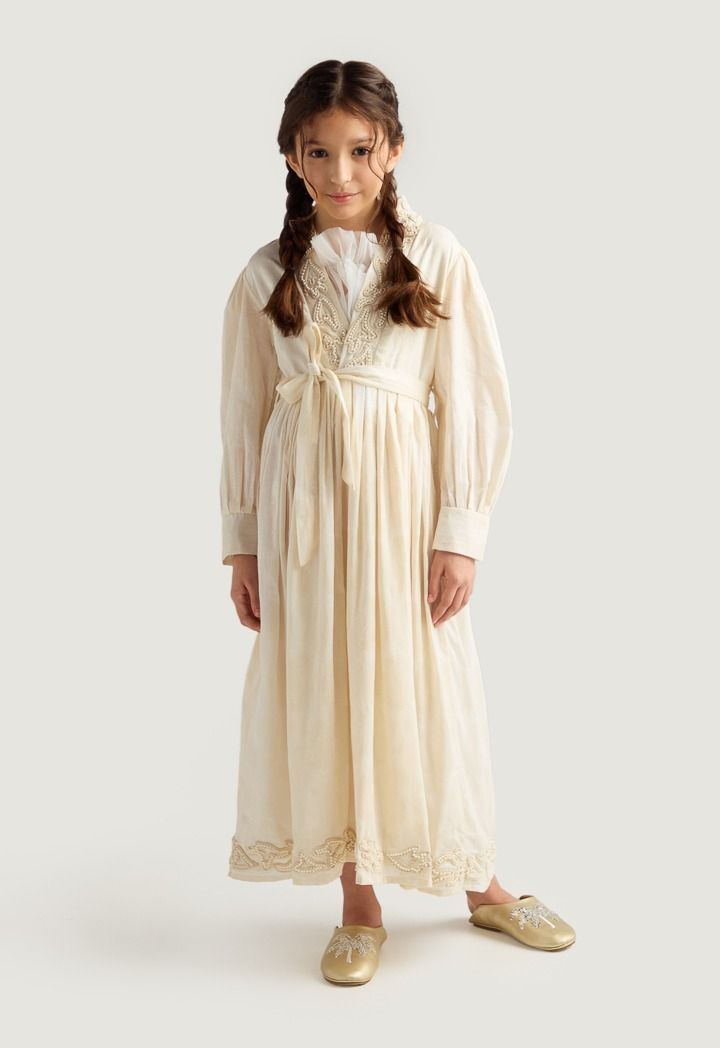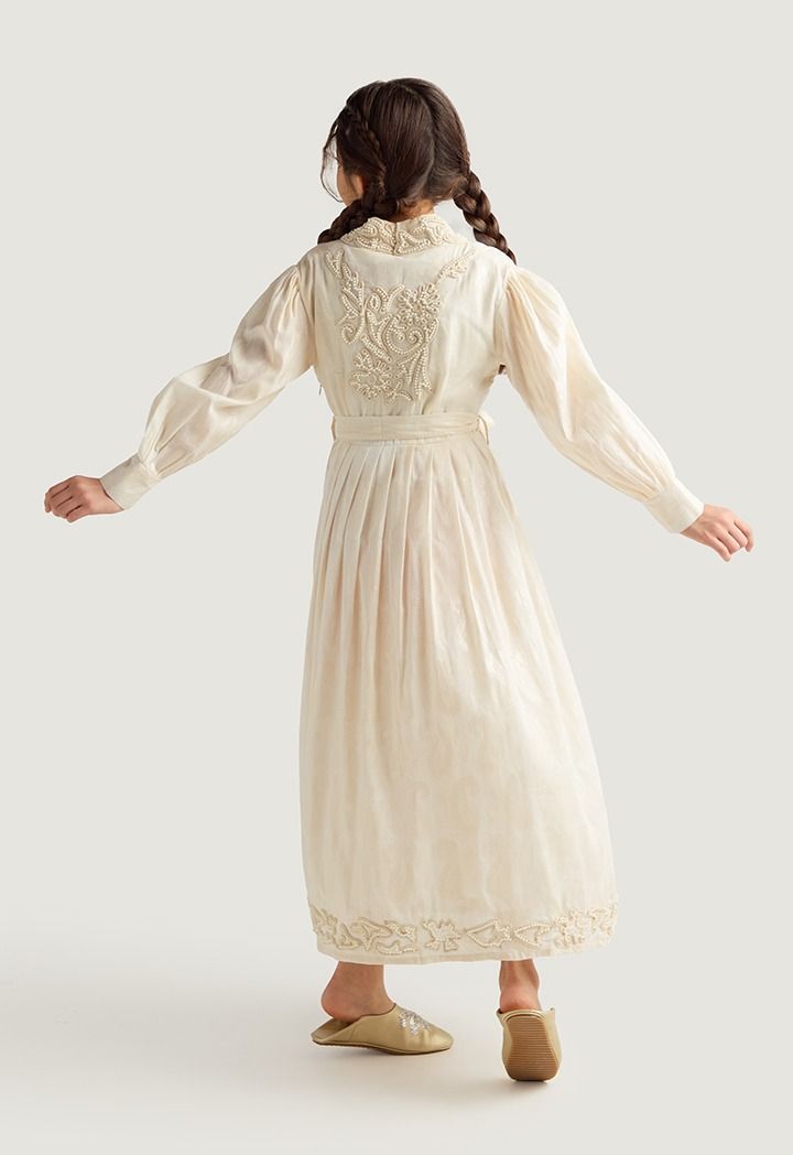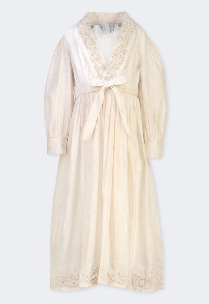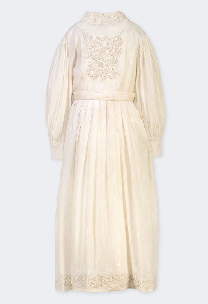 Faux Pearls Embellished Jacquard Dress |