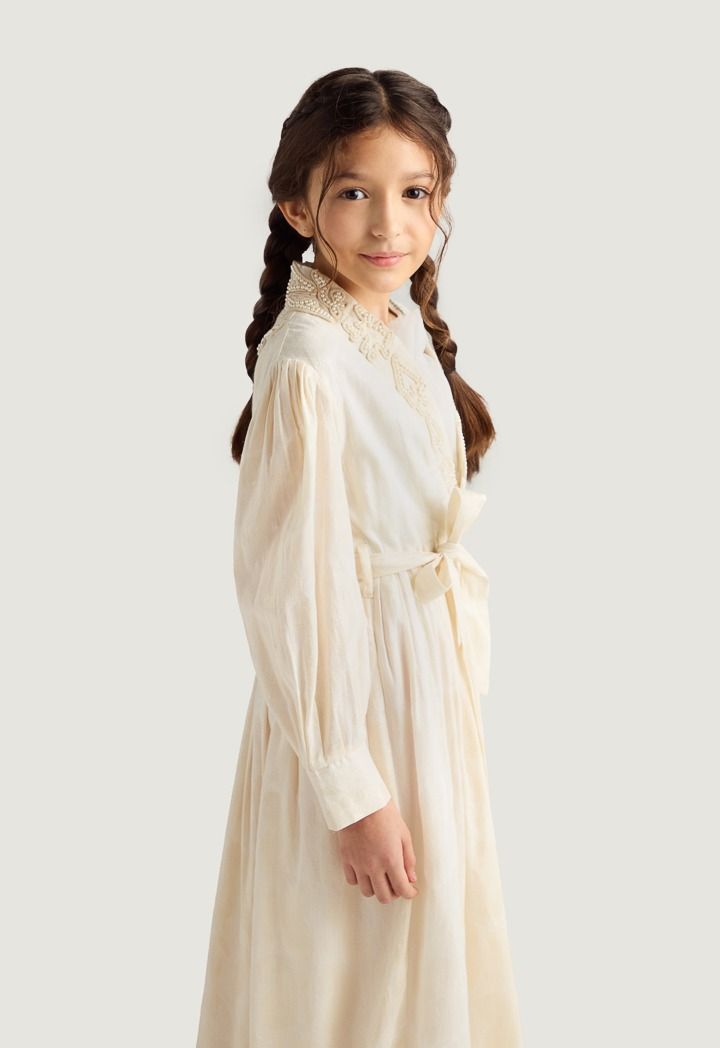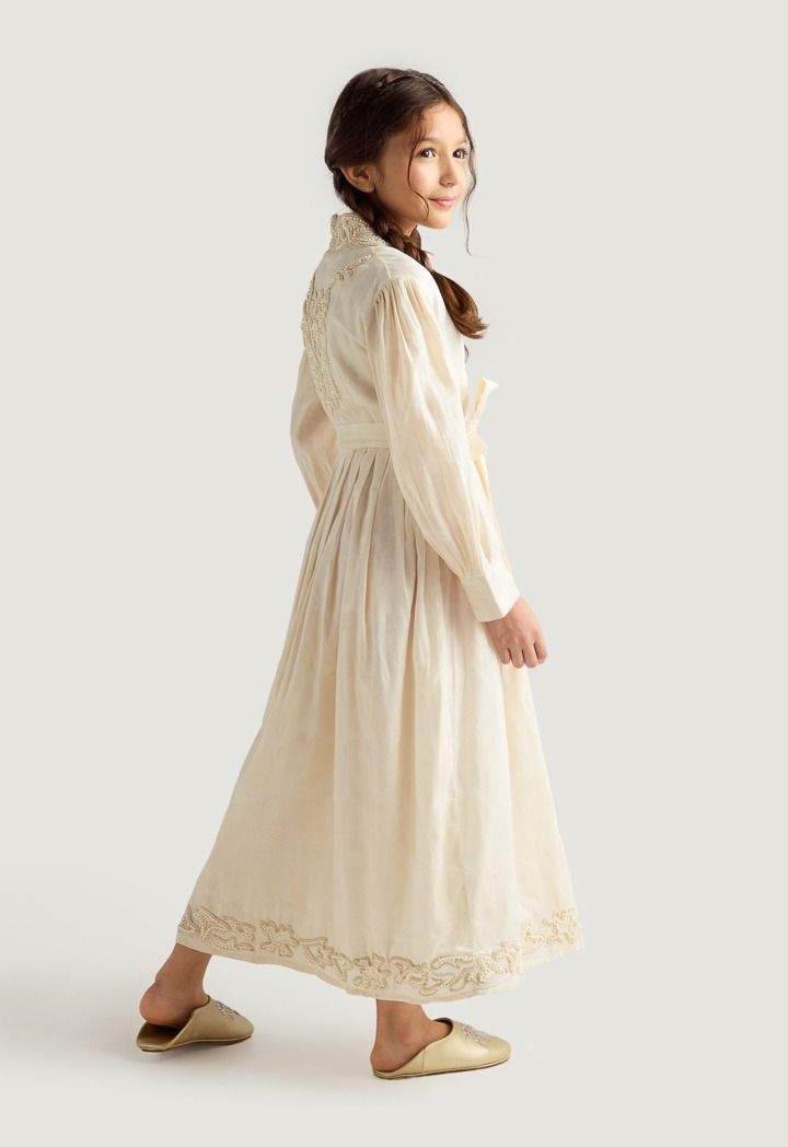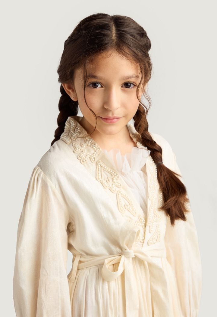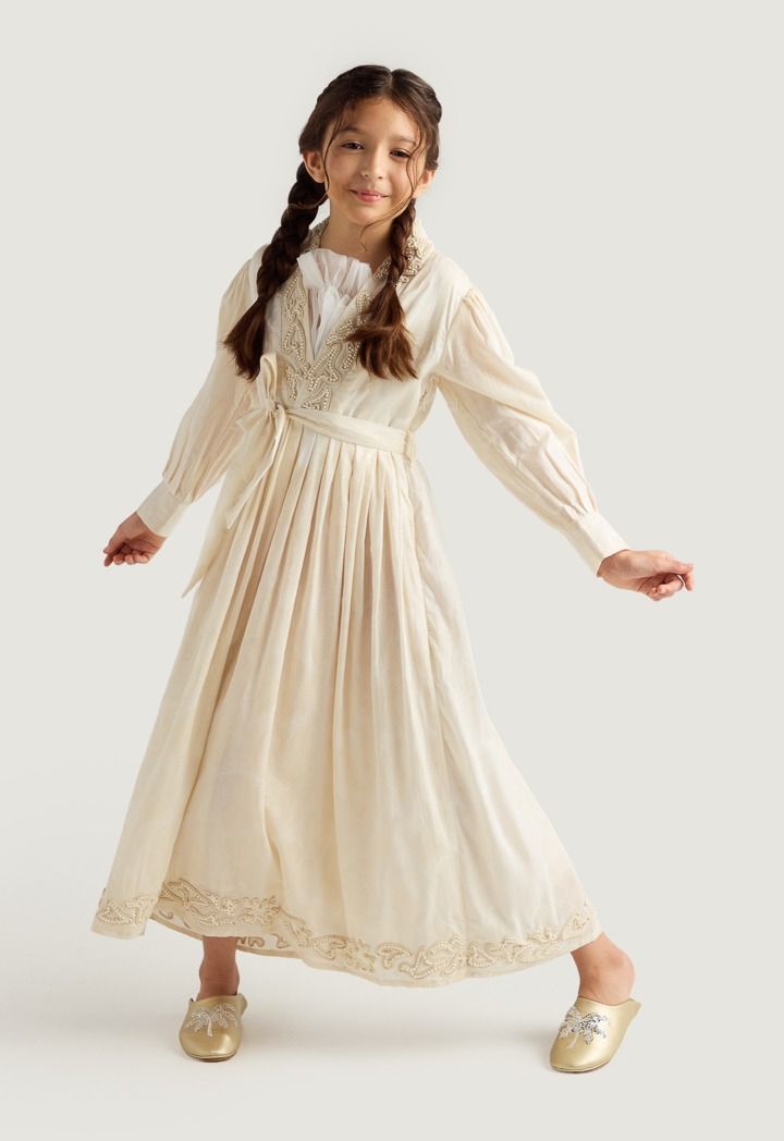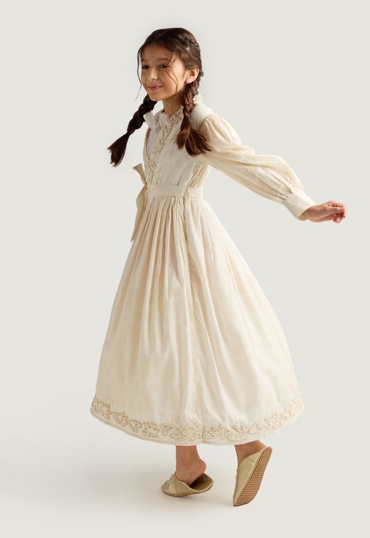 Faux Pearls Embellished Jacquard Dress |