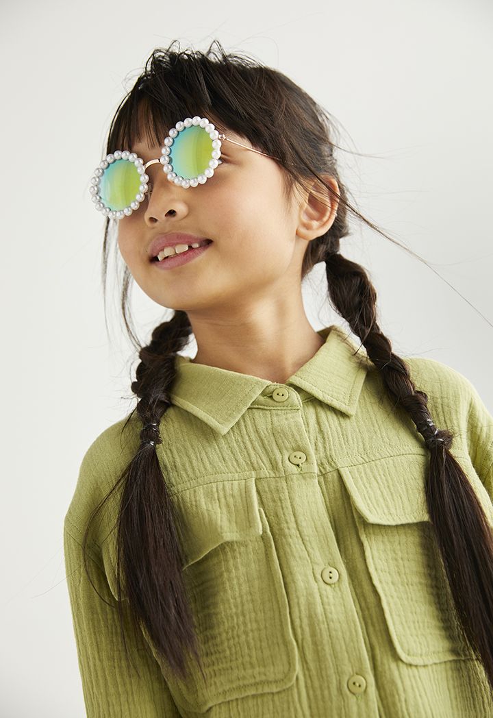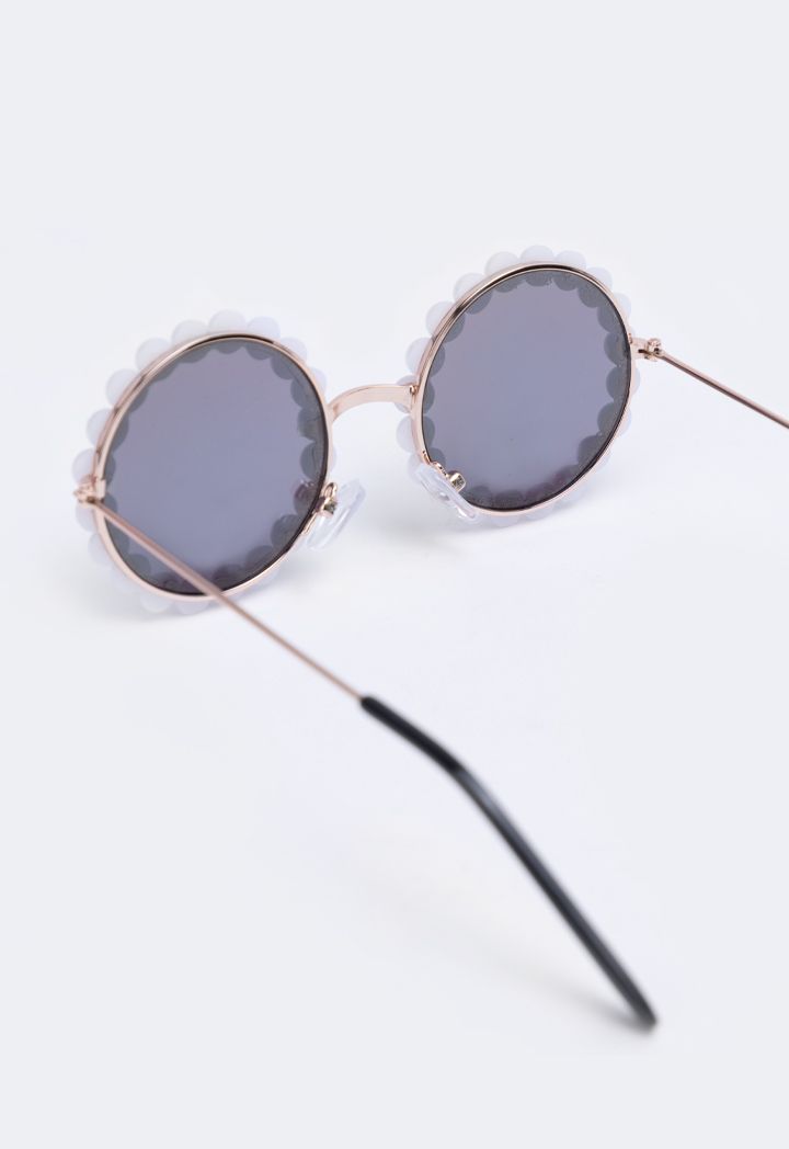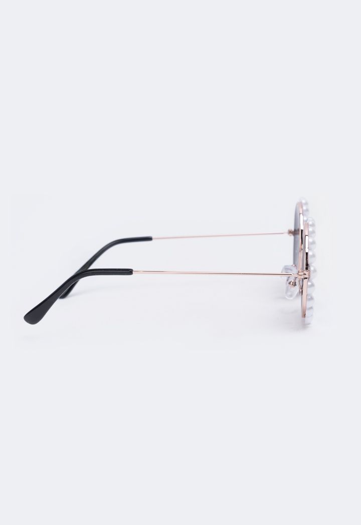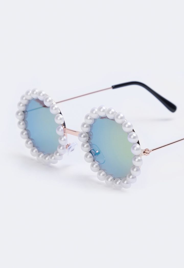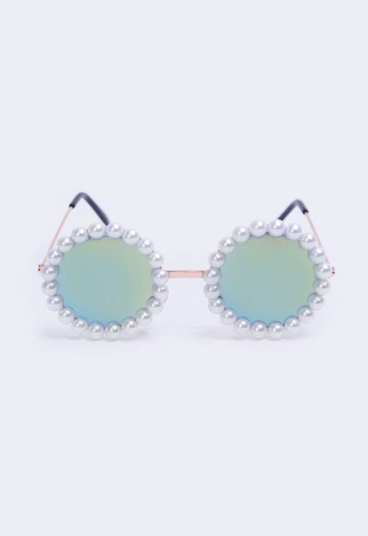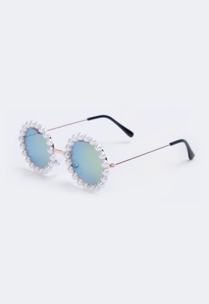 This pair of glasses is for the girls who prefer a more modern and edgy look, featuring faux pearls embellished round lenses for a more sparkly look.