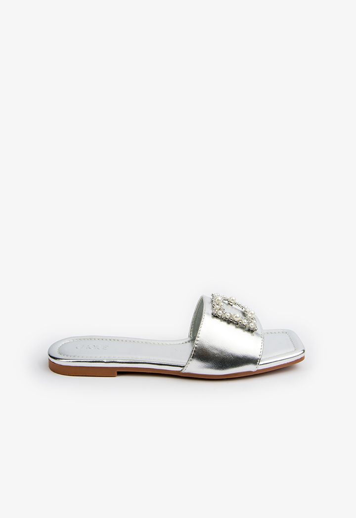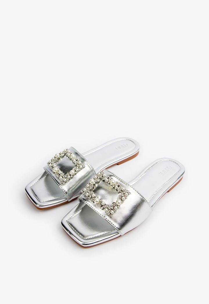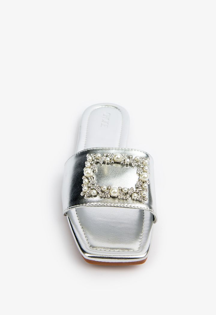Faux Pearls Embellished Shimmery Slides |