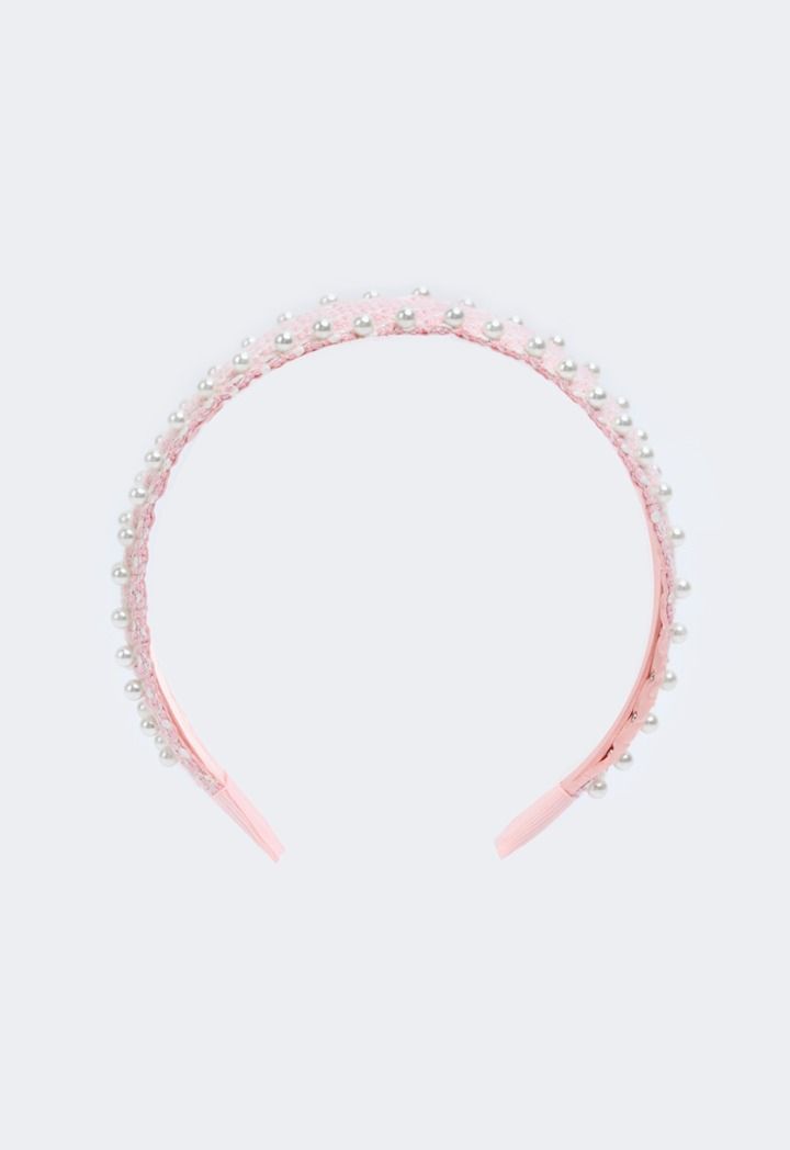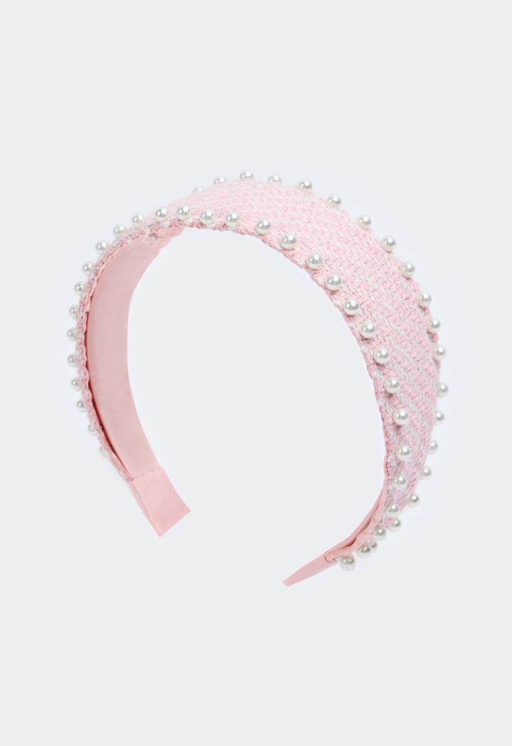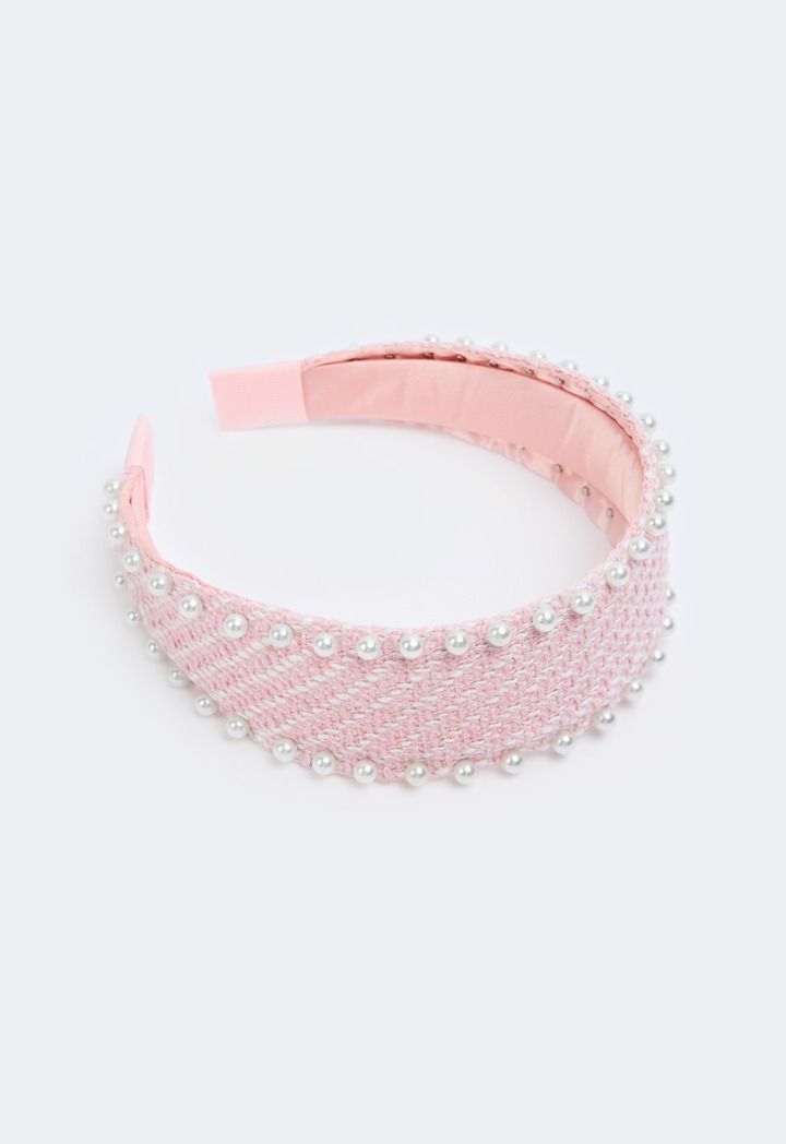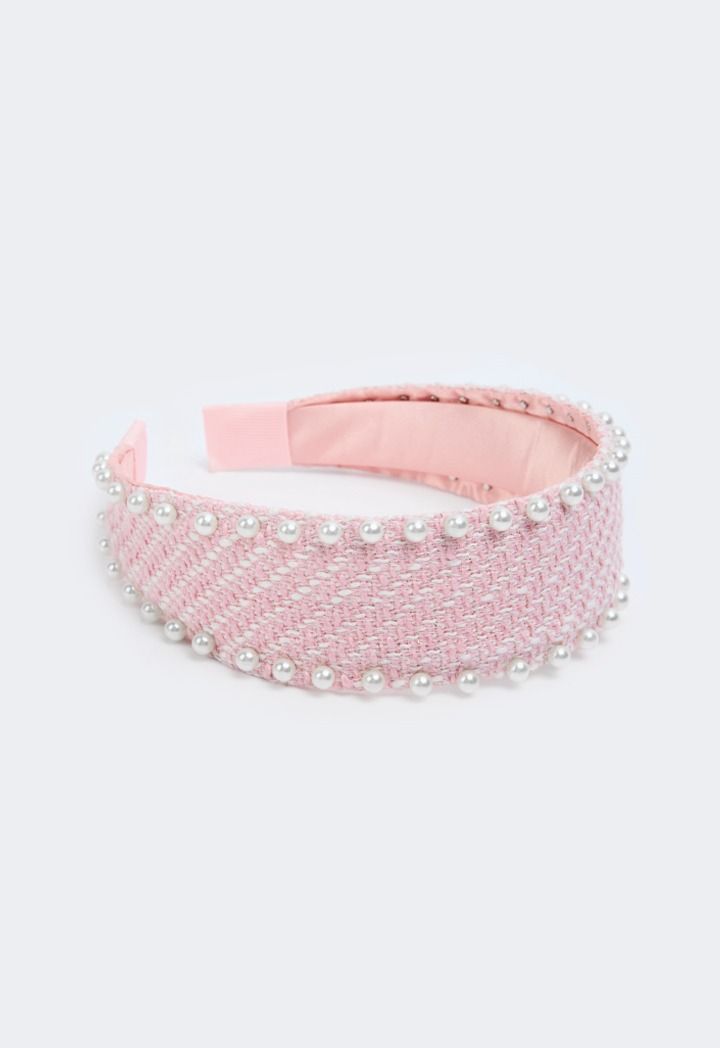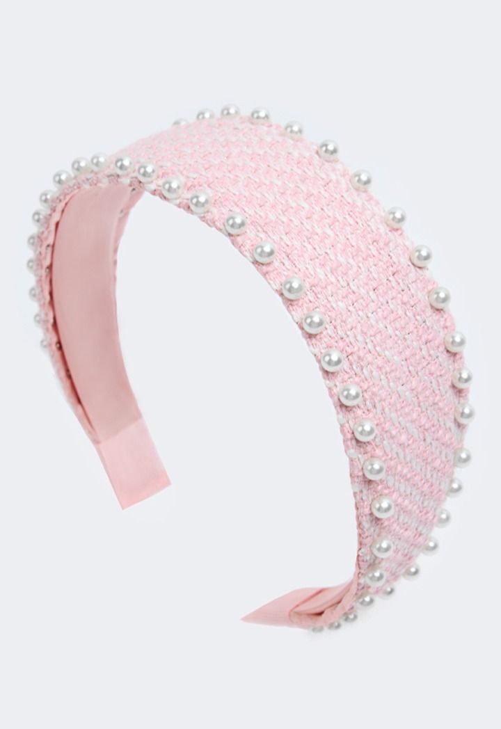 Faux Pearls Embellished Tweed Headband | Riva Fashion