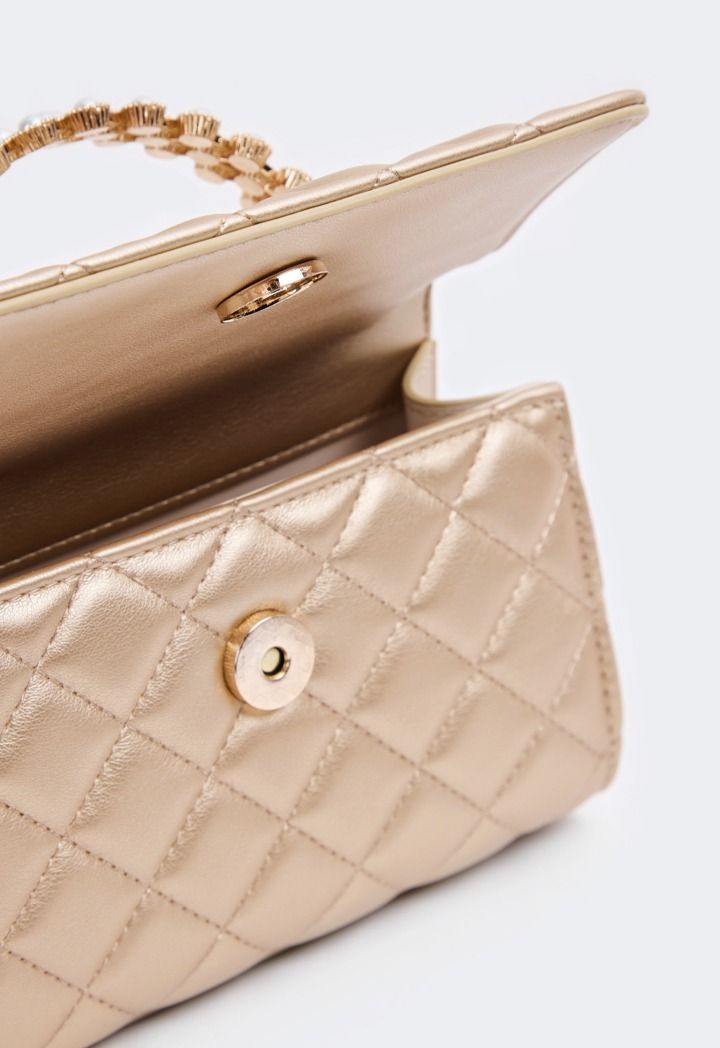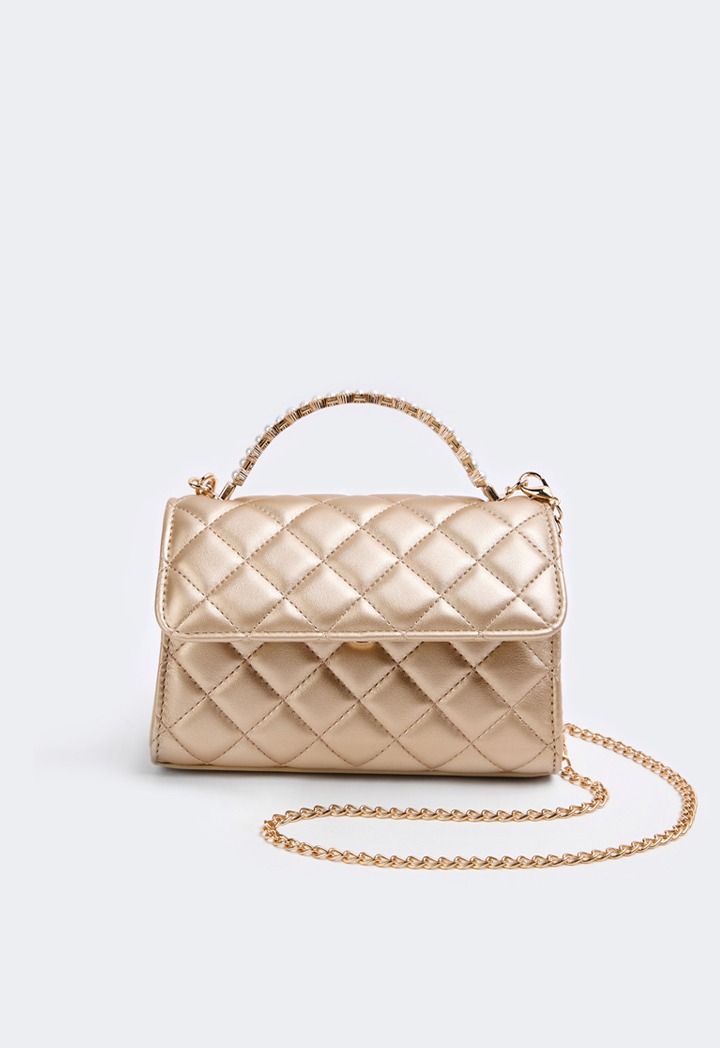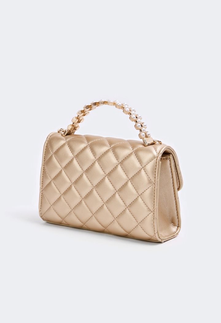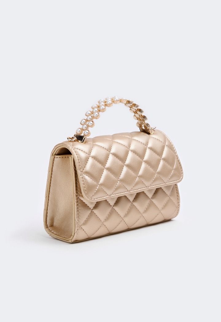 Faux Pearls Handle Quilted Handbag | Riva Fashion