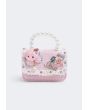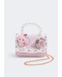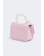 Faux Pearls Handle Tweed Crossbody Bag |