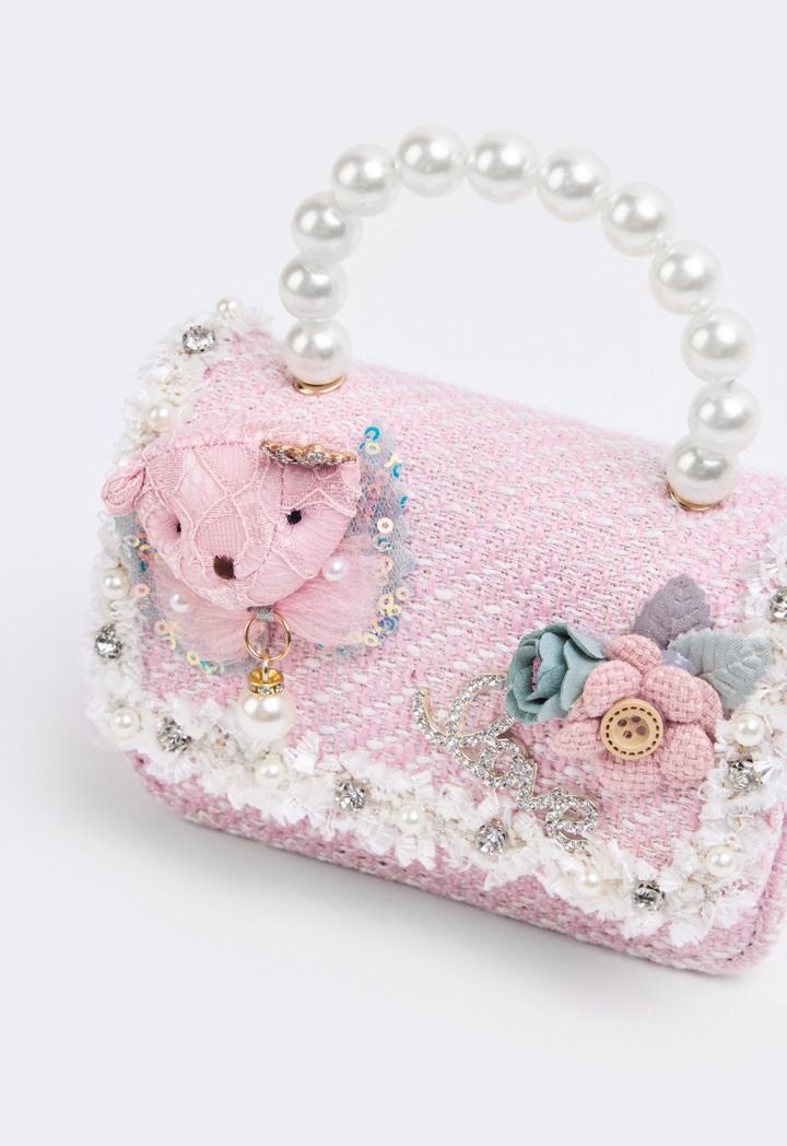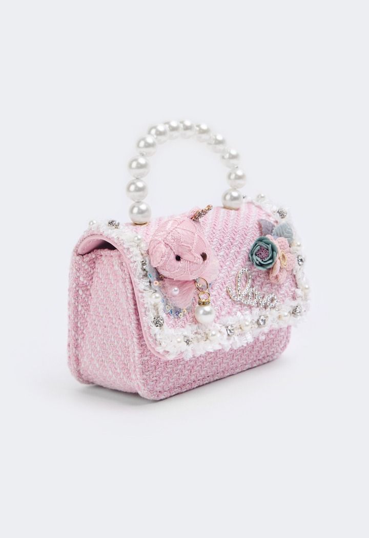 Design : Tweed, Embellished, Faux Pearls, Crystal, Shoulder Chain