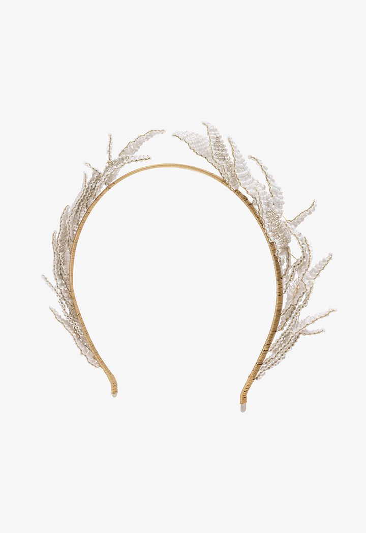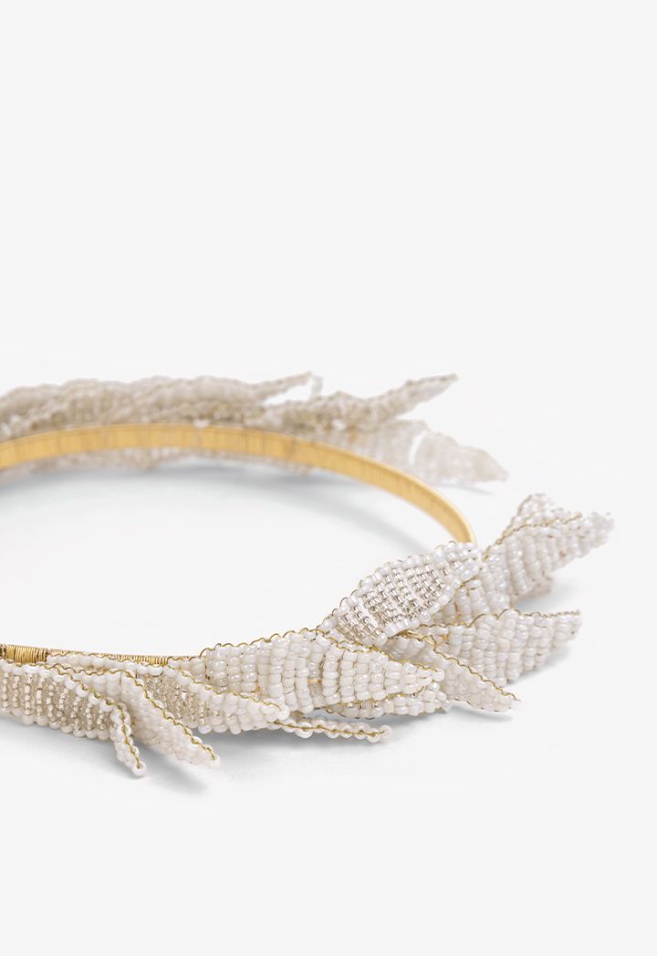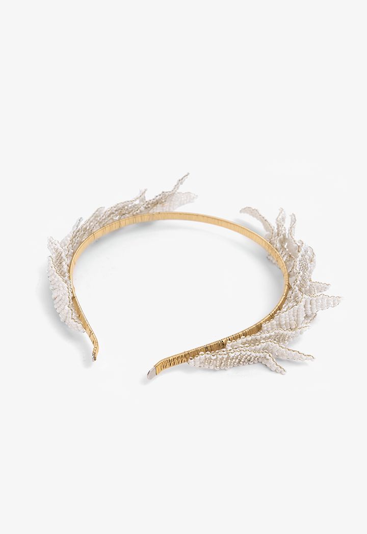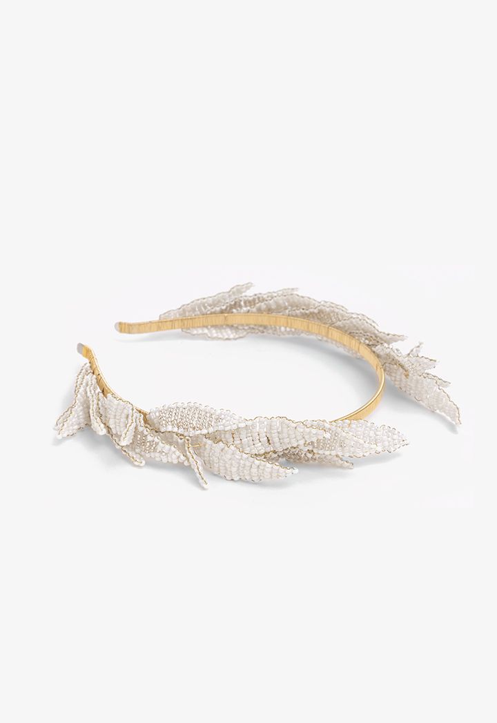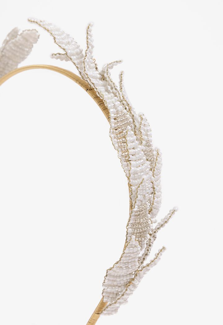 Faux Pearls Leaves Headband |