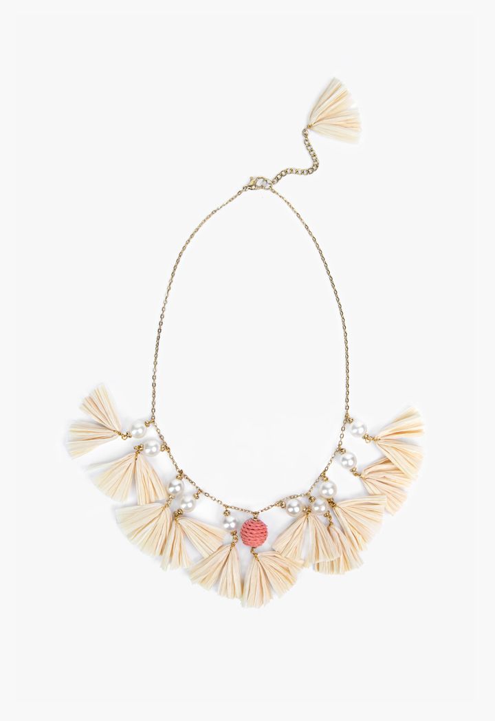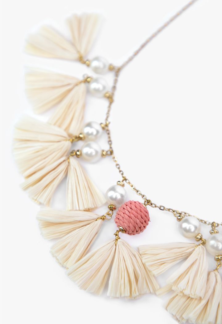 Faux Pearls & Paper Tassels Necklace |