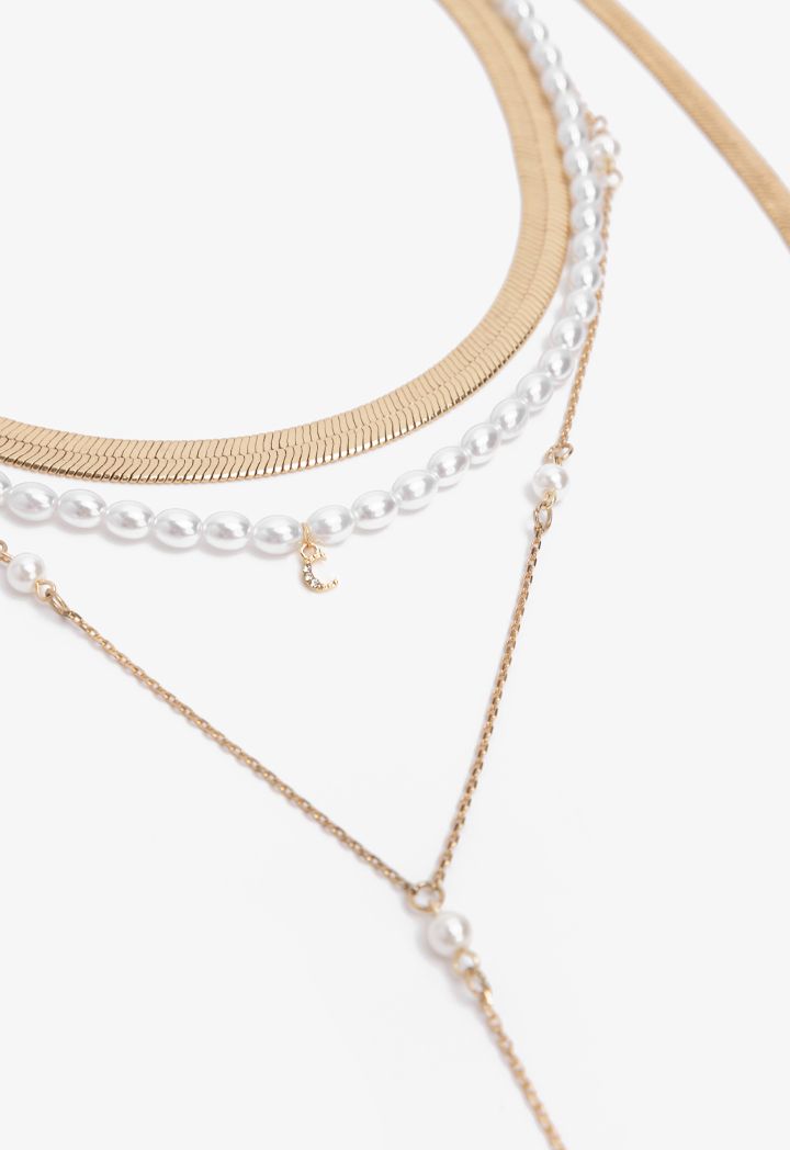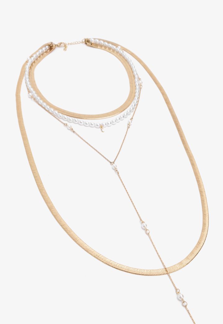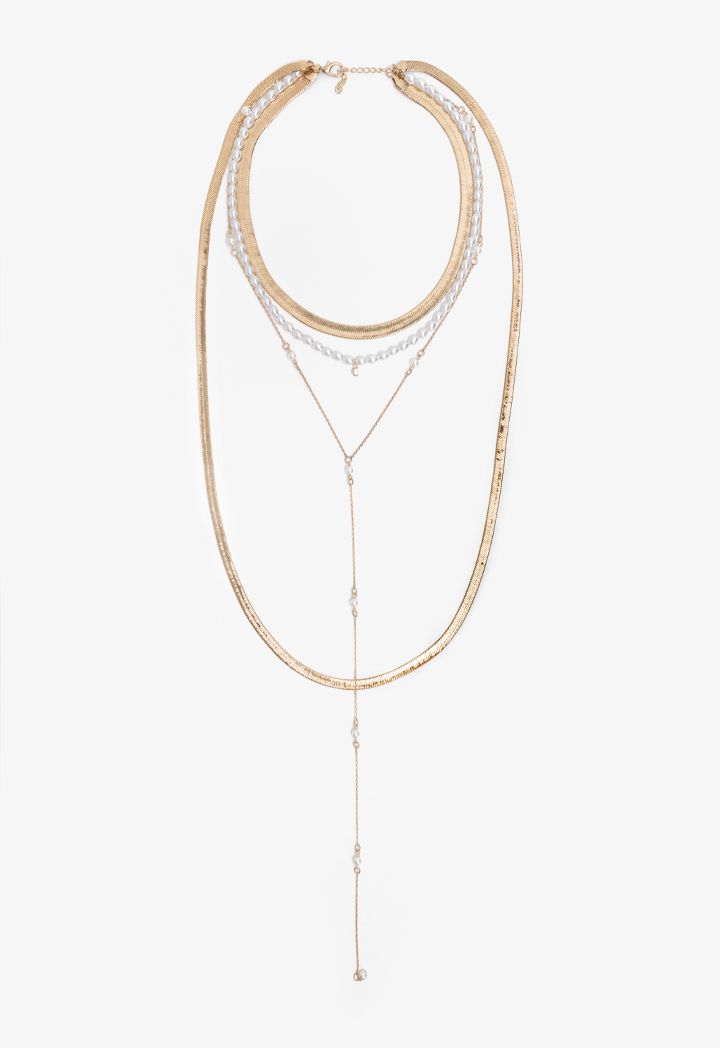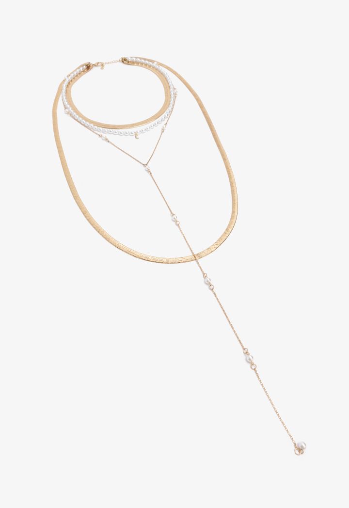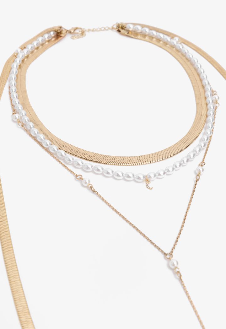 A necklace that combines between the classic touch of faux pearls and the modern touch of the chains.