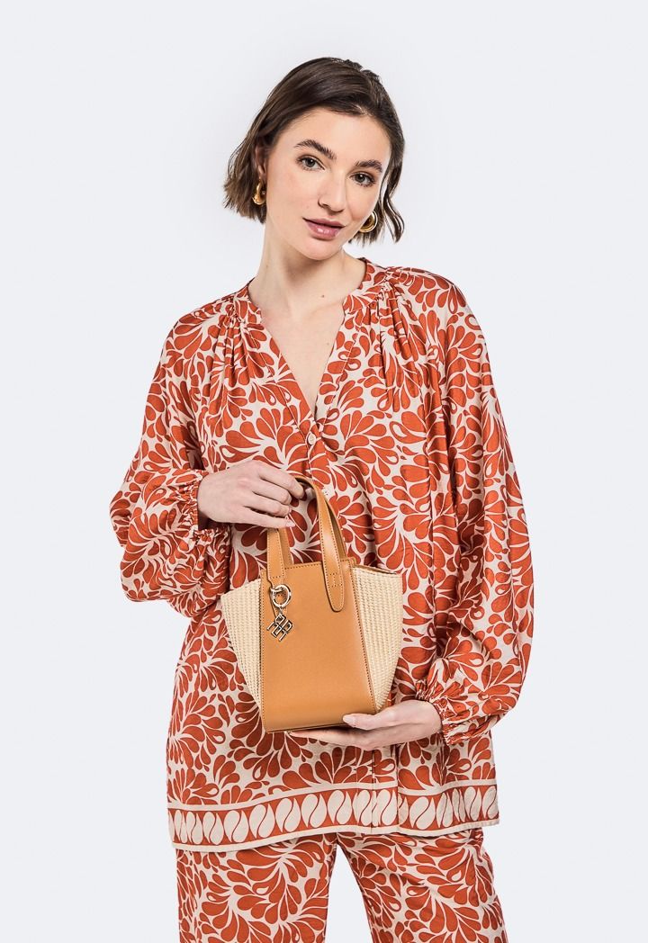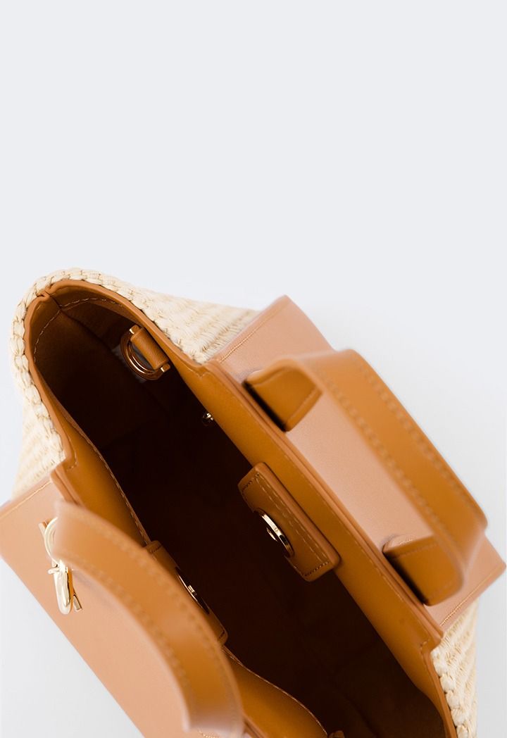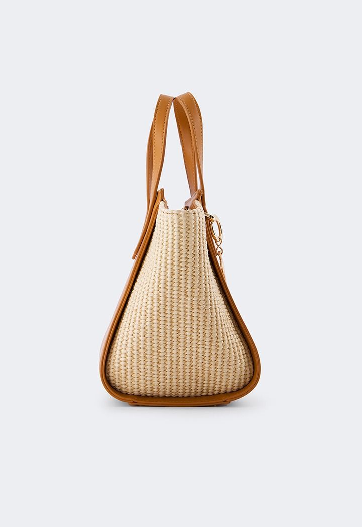 Design : Faux Straw, PU Leather, Top Handle, Shoulder Strap