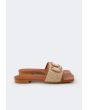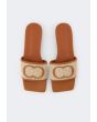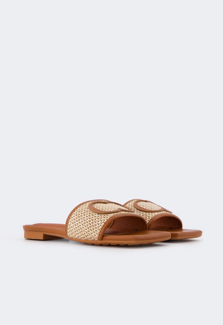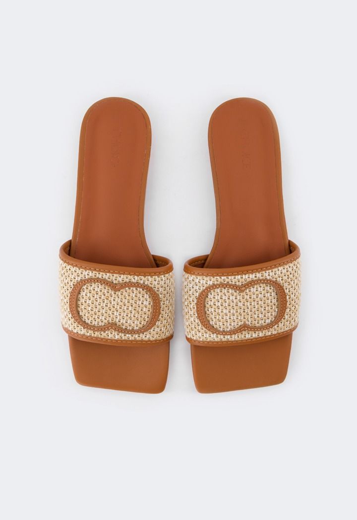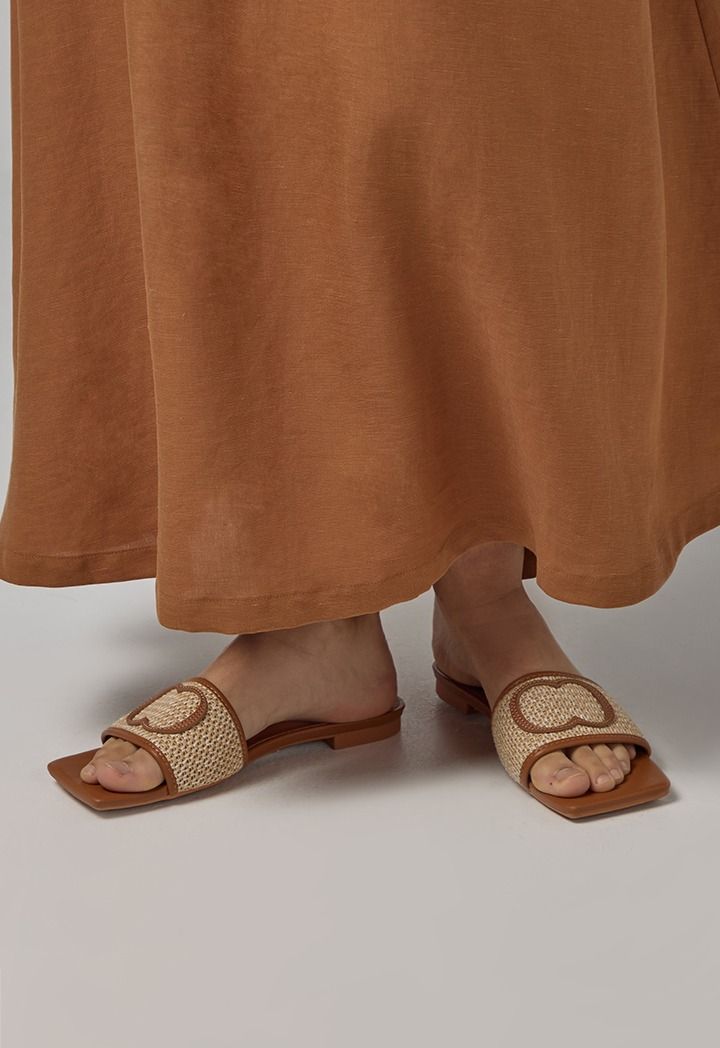 Cover your feet with comfort yet while still looking good, featuring this uniquely intricate faux straw monogram design.