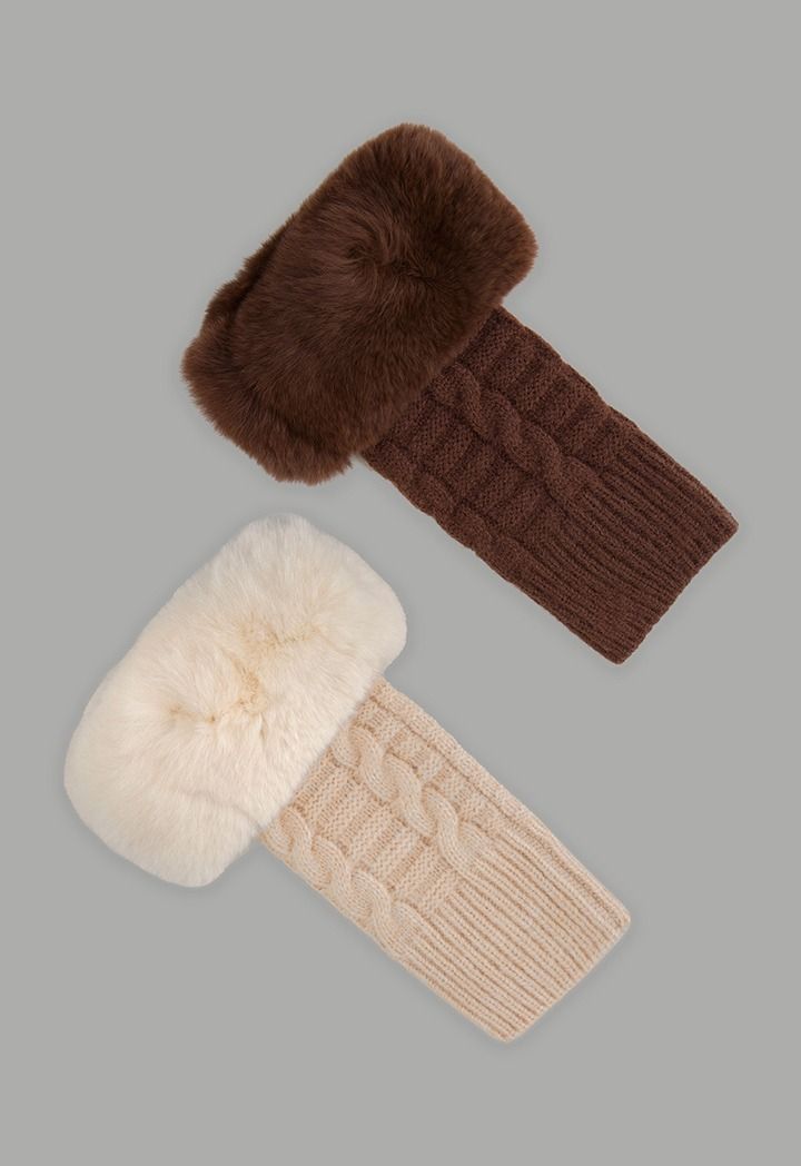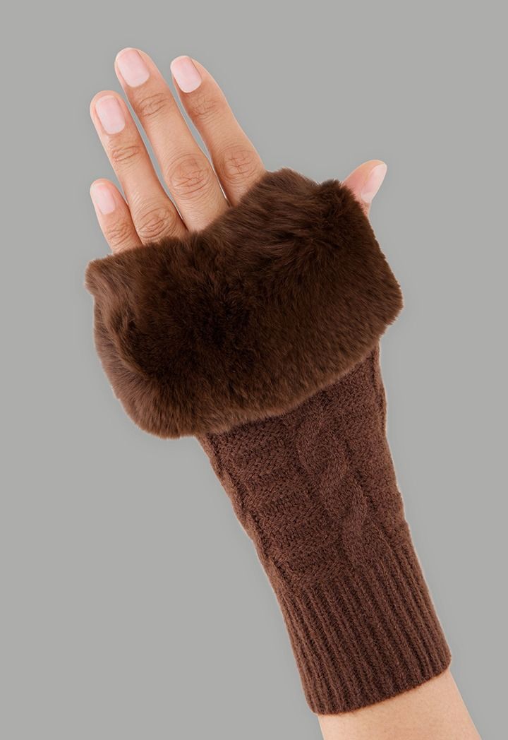 A pair of fingerless knitted gloves that will keep you warm with access to your smart devices.