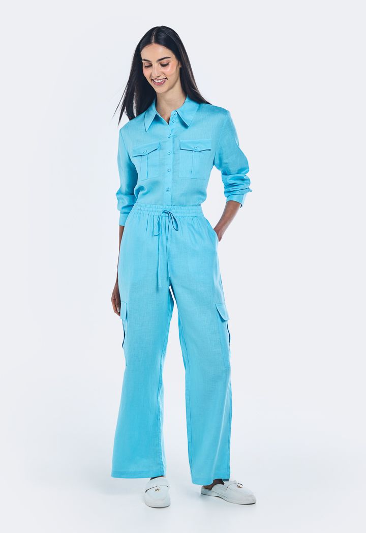 Design: Solid, Side and Flap Pockets, Wide Leg, Straight Cut, Wide Legs