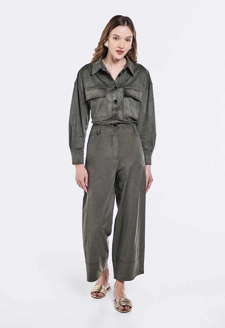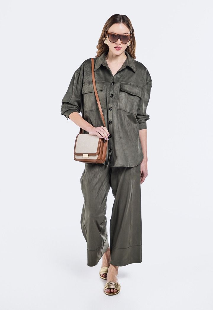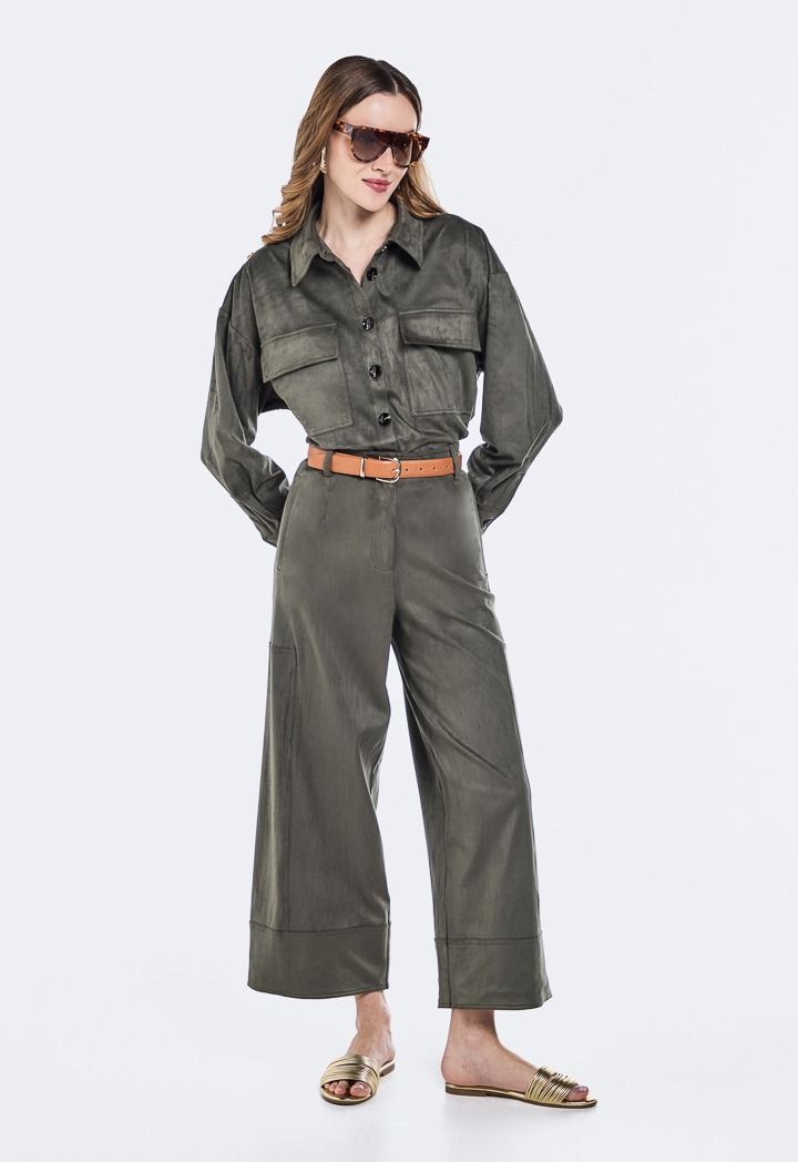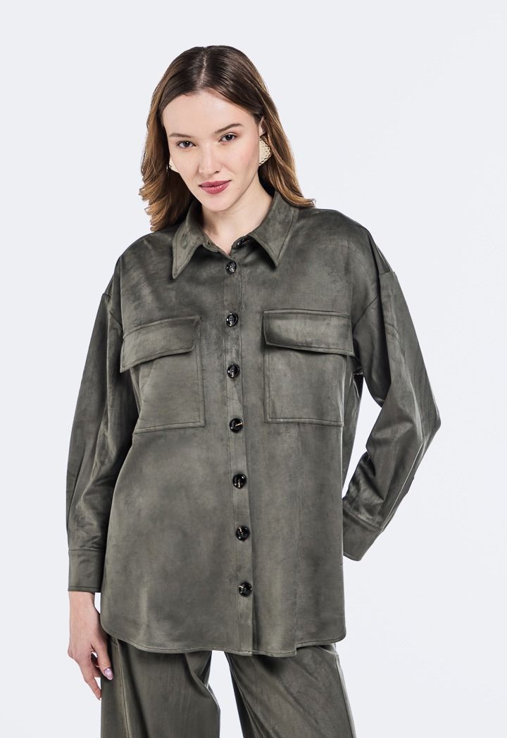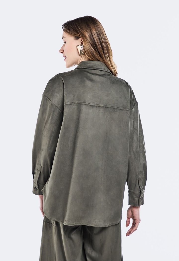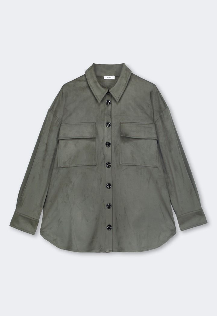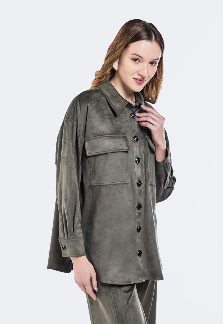 Design: Solid, Flap Pockets, Drop Shoulders, Suede