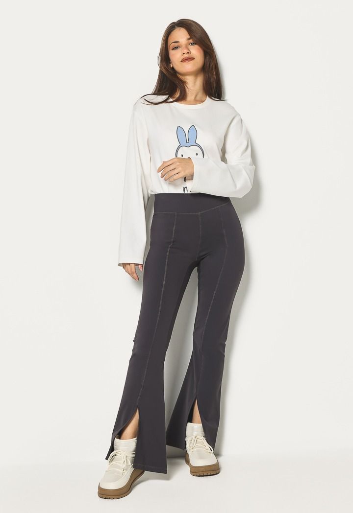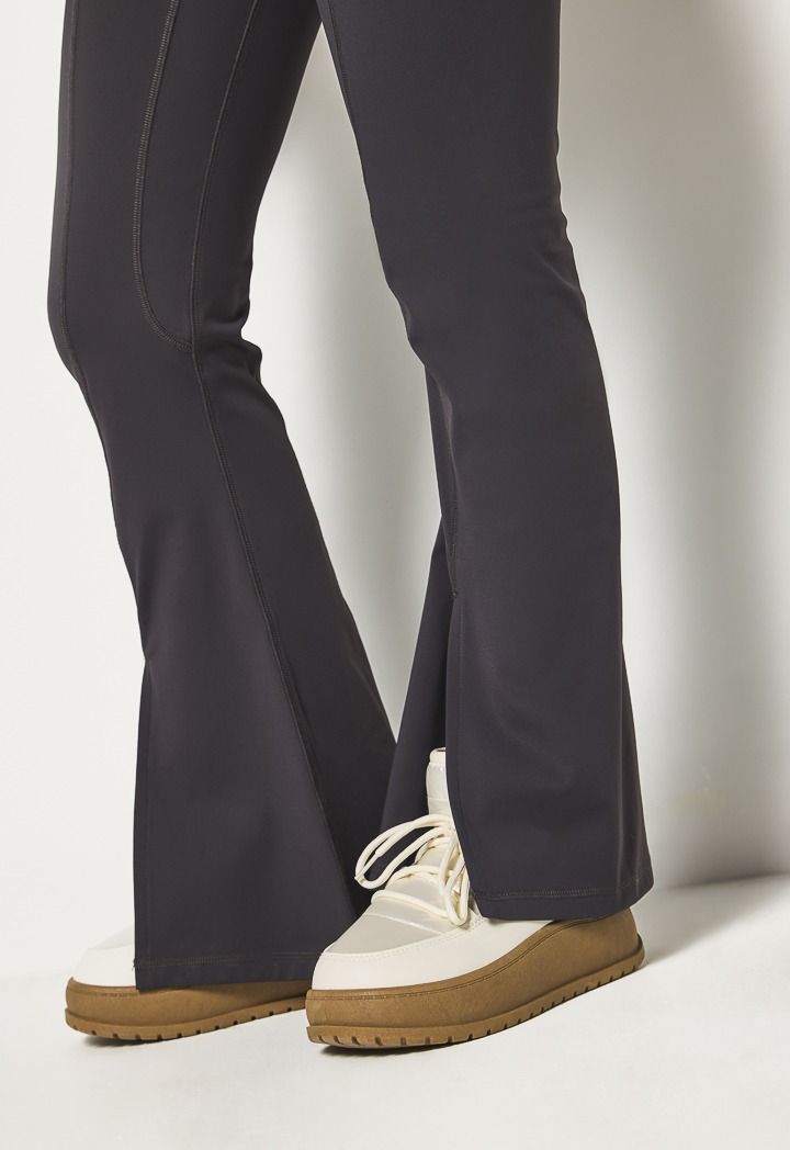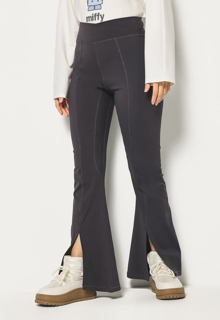 These flared-leg leggings with slits create a streamlined silhouette and can be paired effortlessly with a hooded sweatshirt.