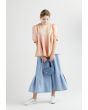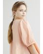 A vibrant blouse that features 3/4 puff sleeves in addition to a flared waist.