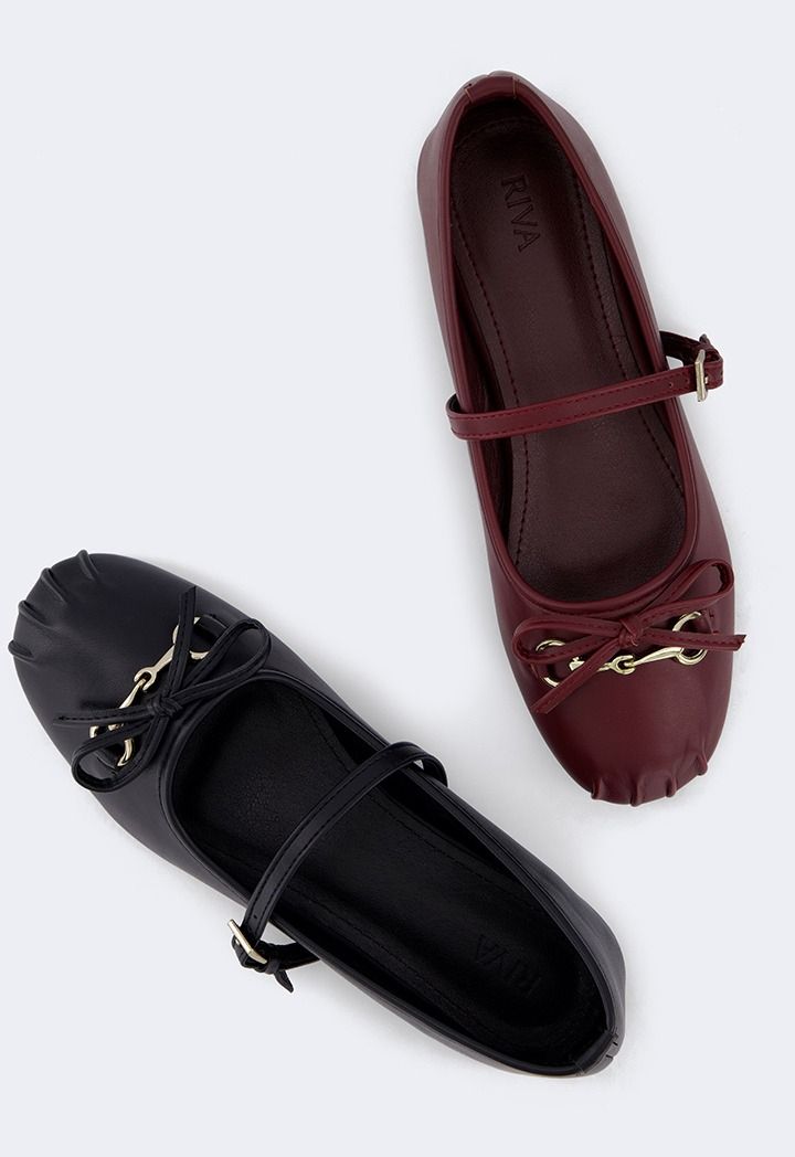 Flat PU Leather Ballerinas | Women's Winter Flats | Riva Fashion