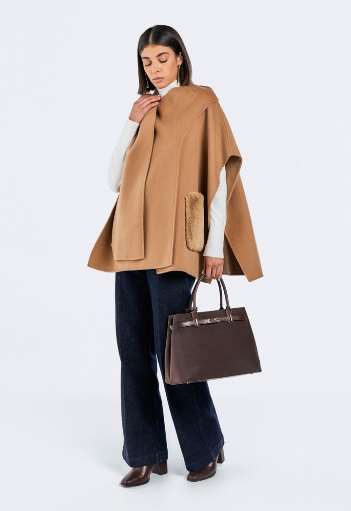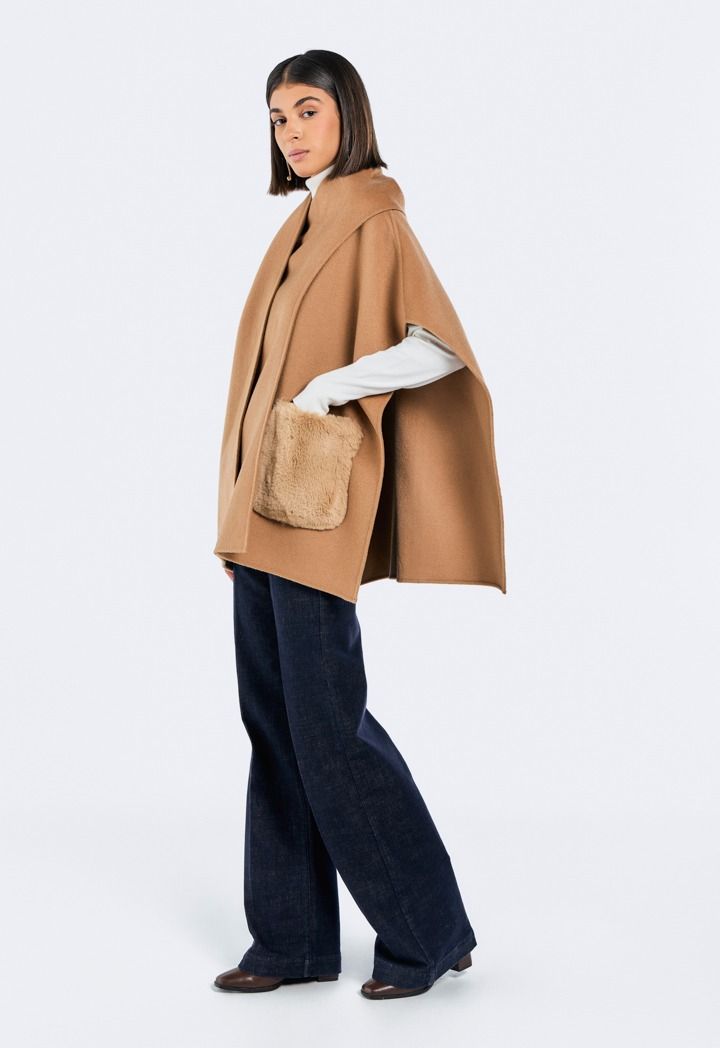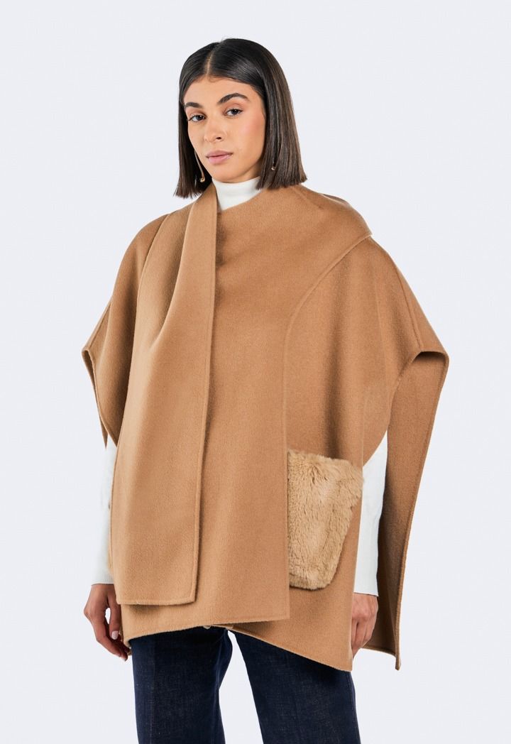 This poncho with a shawl design pairs perfectly with a pair of jeans.