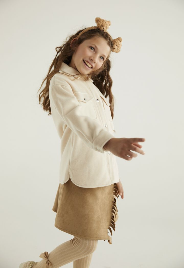 An essential jacket that features a fleece shirt design and front buttons for closure.