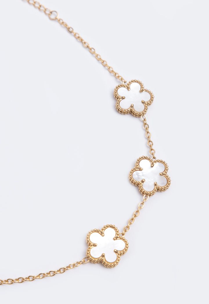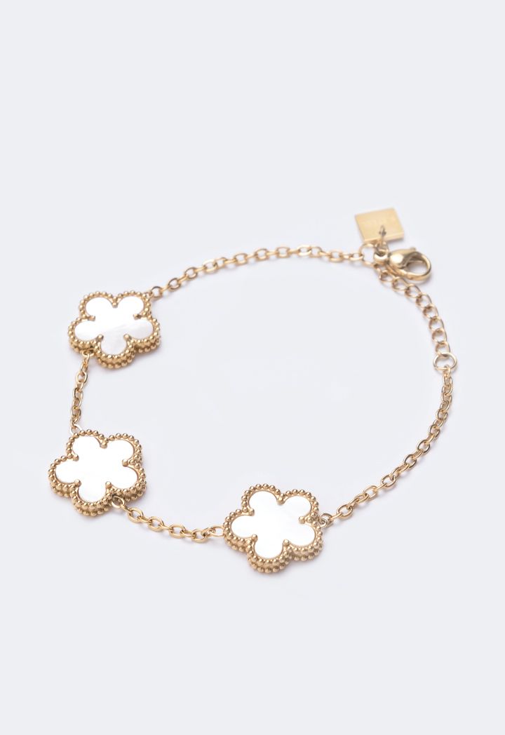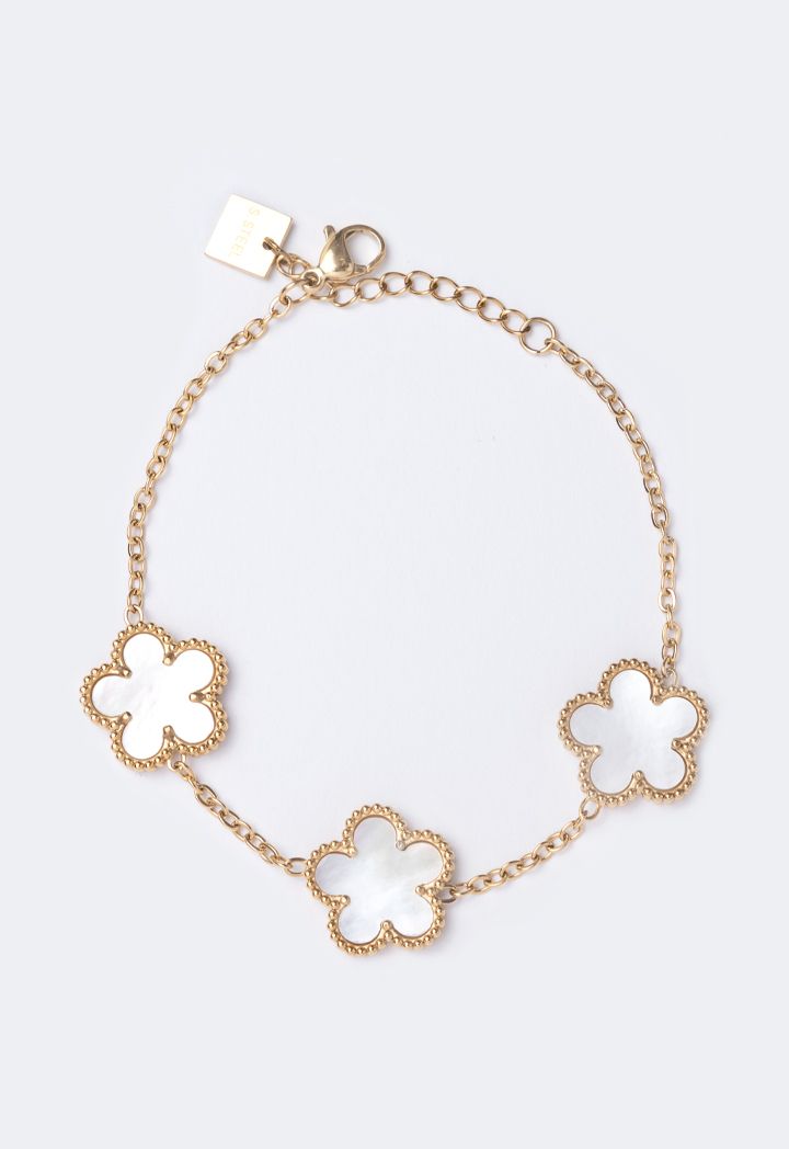 A simple bracelet that you can pair with your favorite watch, featuring a floral charm embellishment and a lobster claw closure.