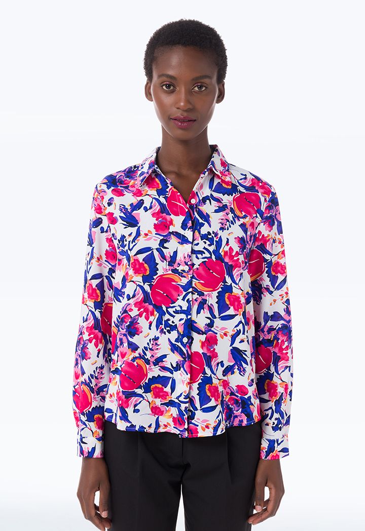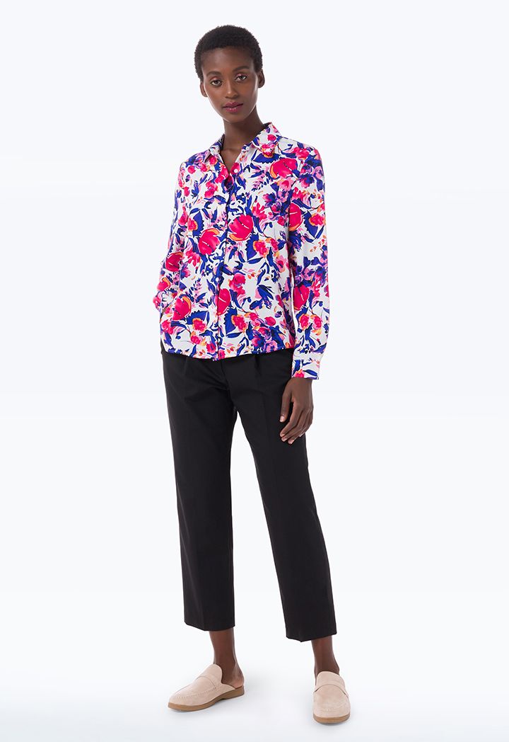 Keep your off-duty look chic with this pretty top embraced by the floral print.