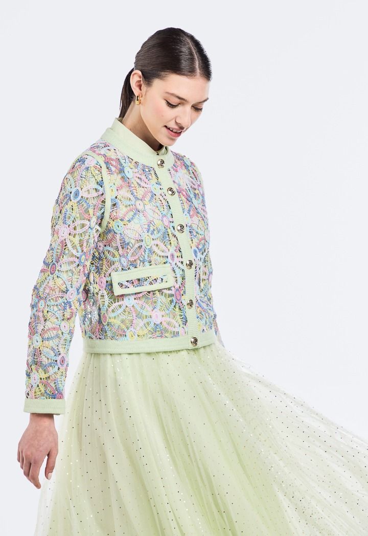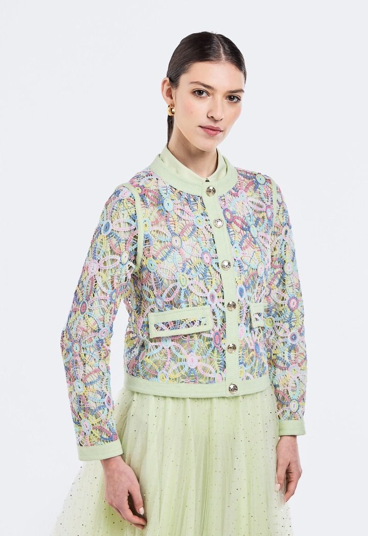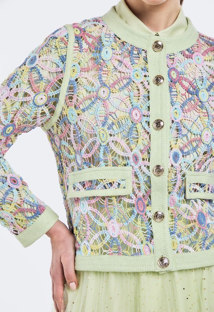 Floral embroidered crochet jacket a touch of natural elegance that adds a unique charm to your look warm colorful and perfect for every season.