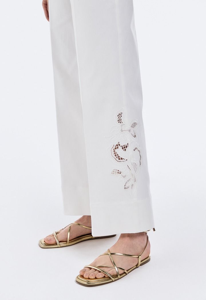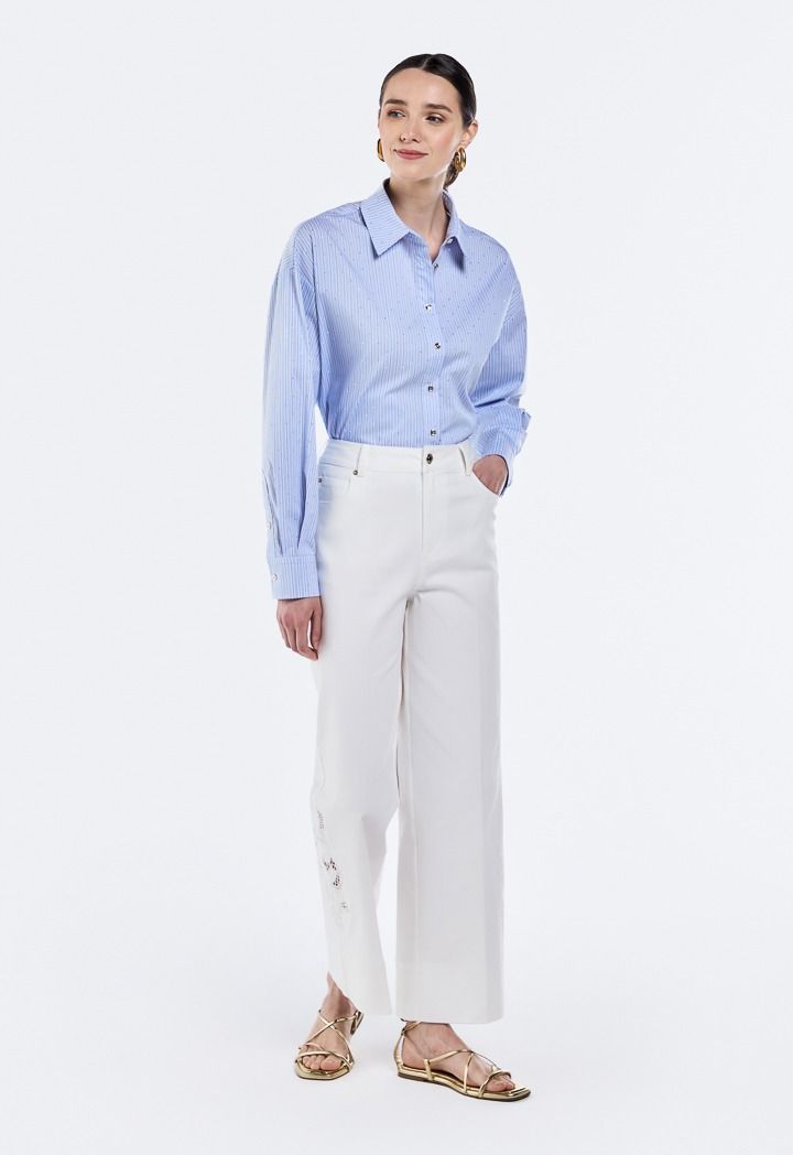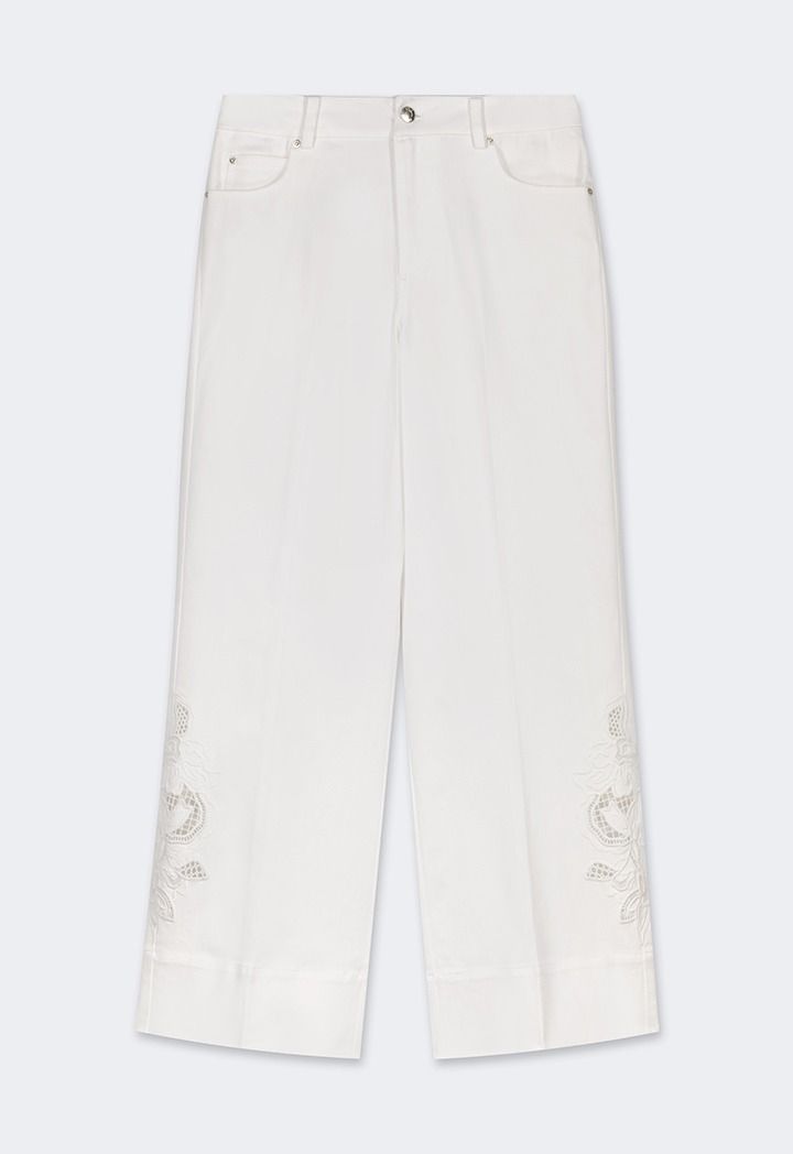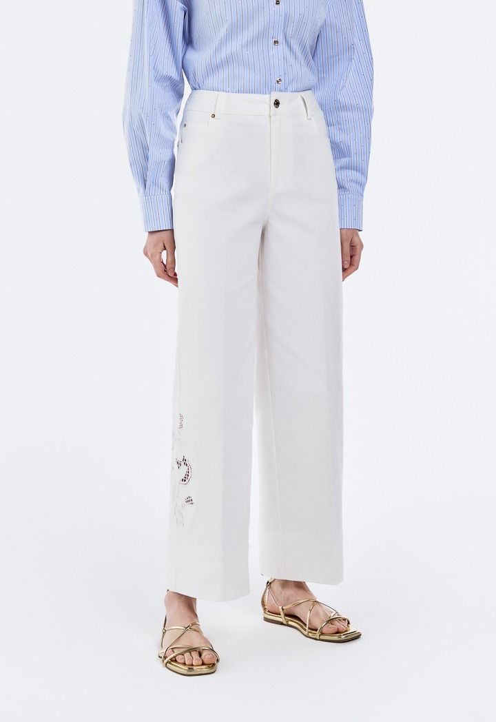 Design: Solid, Wide Leg, High Waist, Side & Back Pockets, Denim, Floral Embroidered