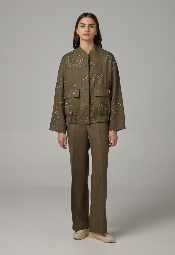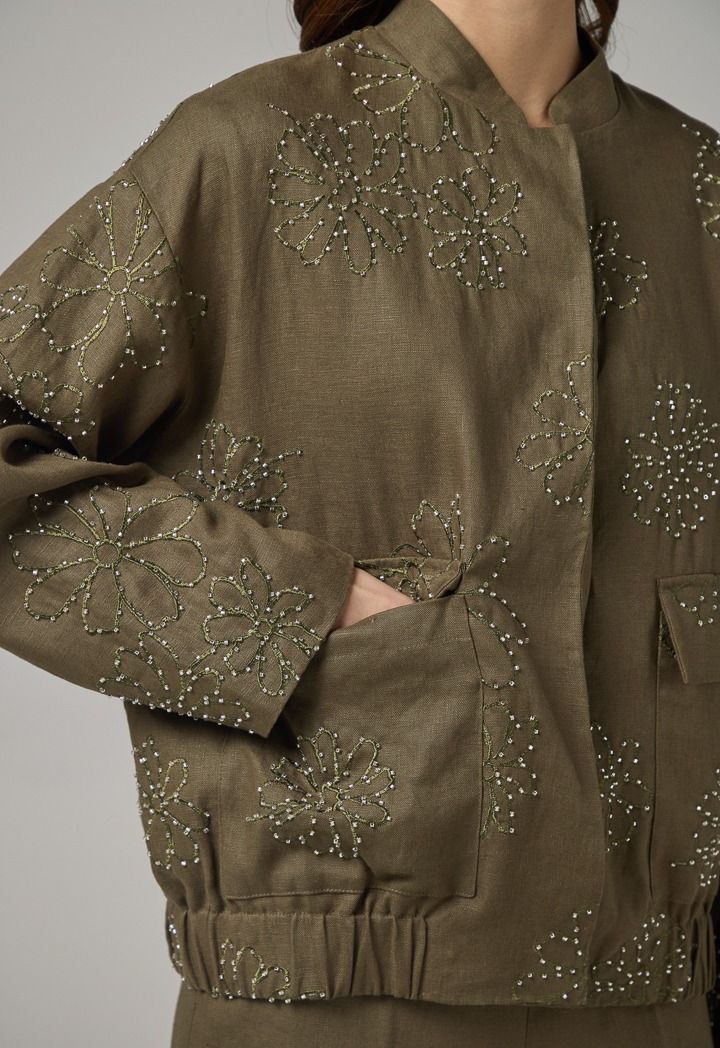 Design: Solid, Floral Embroidered, Attached Lining, Beads Embellished, Front Flap Pockets, Elastic Hem