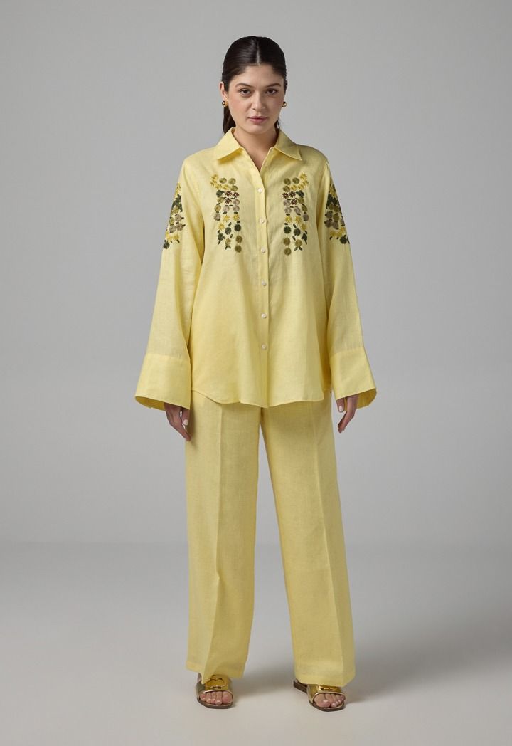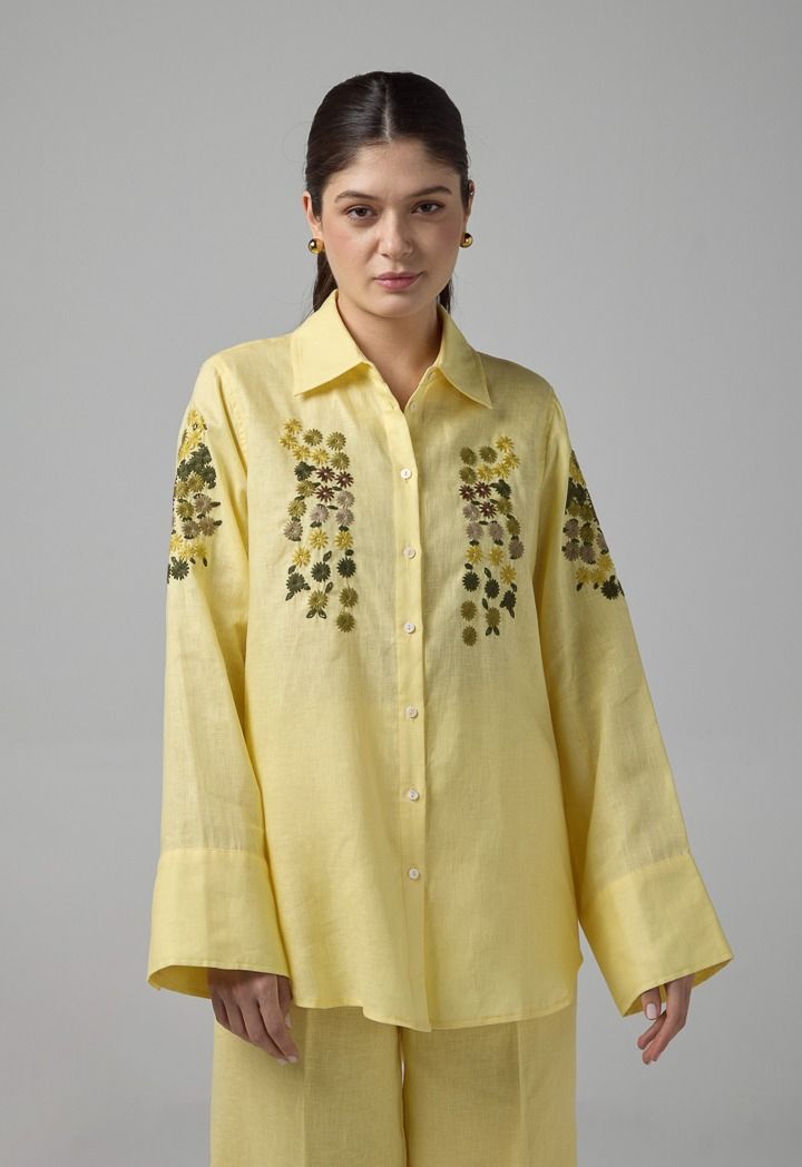 Shine in style with floral embroidered shirt that adds a touch of femininity and beauty to your look.