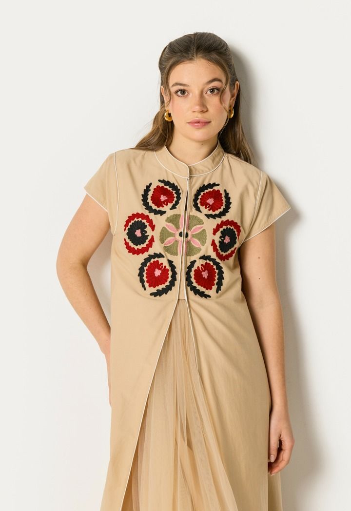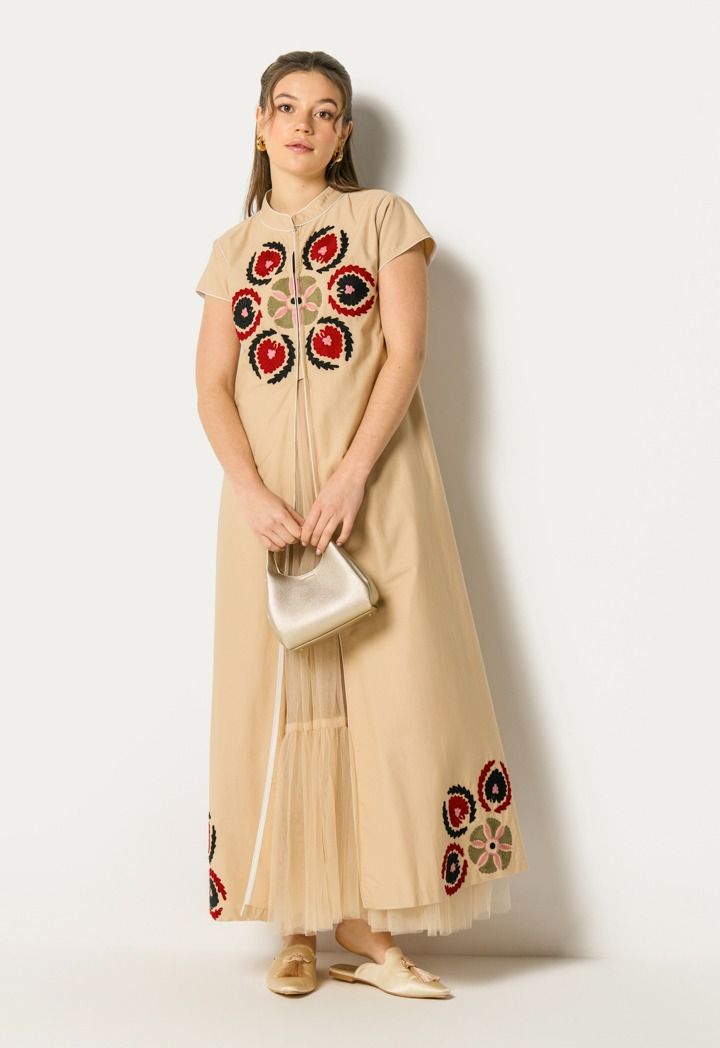 Design : Contrast, Embroidered, Floral, Detached Tiered Tulle, Attached Lining