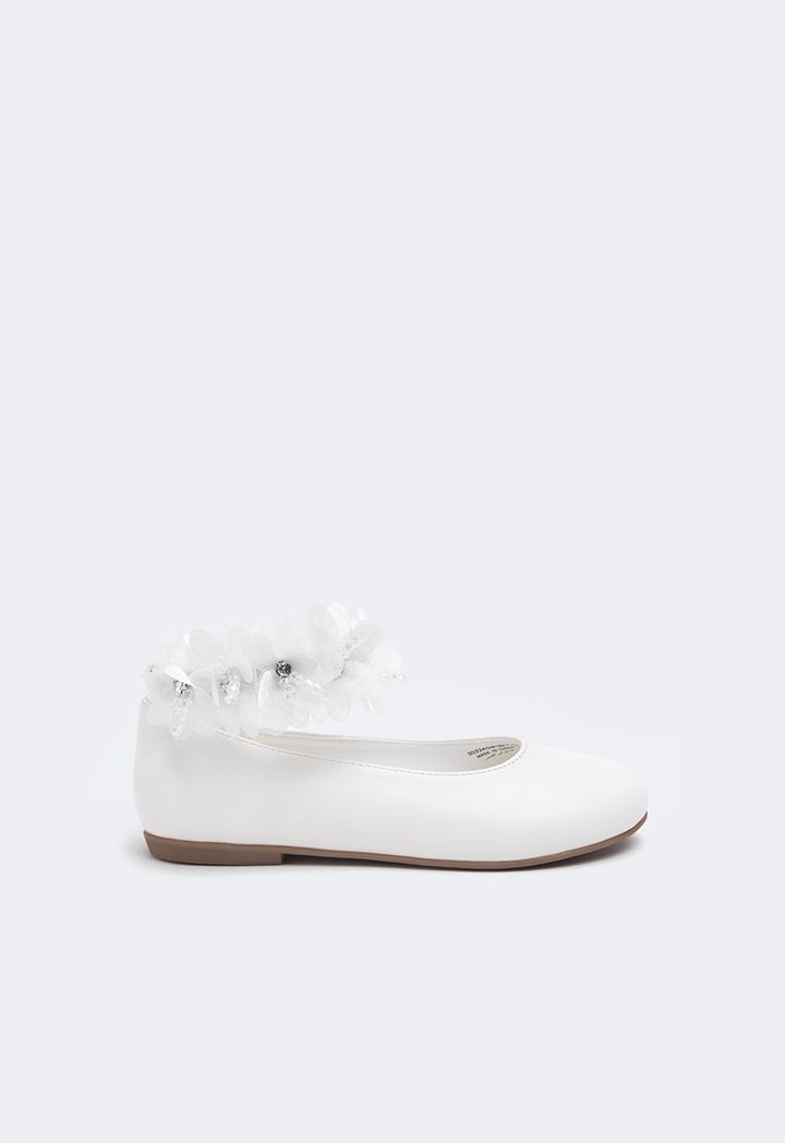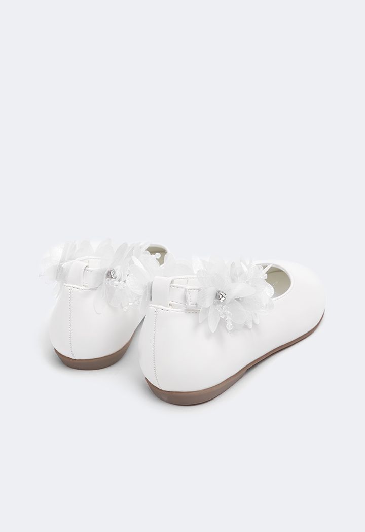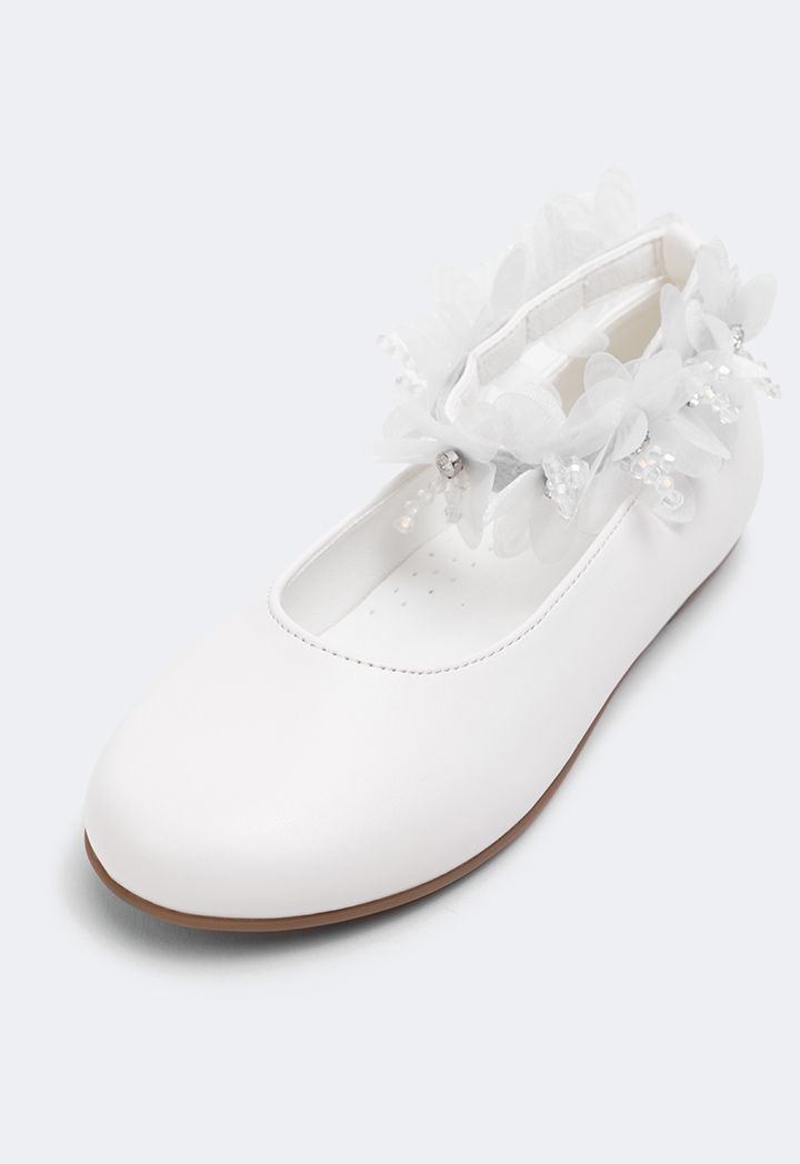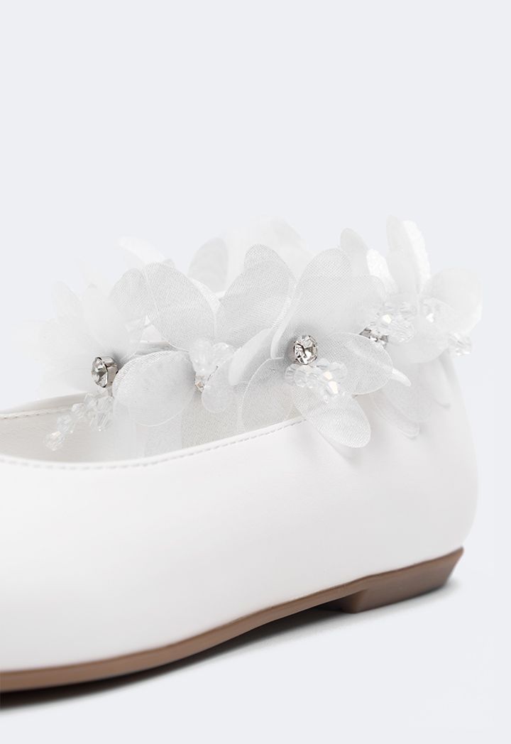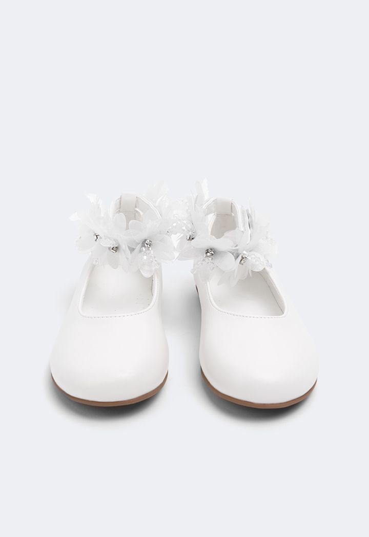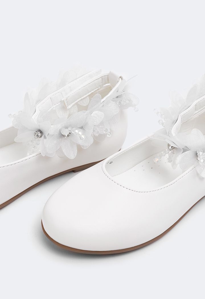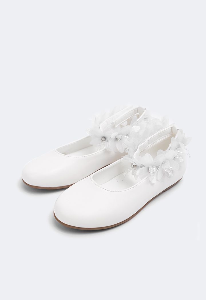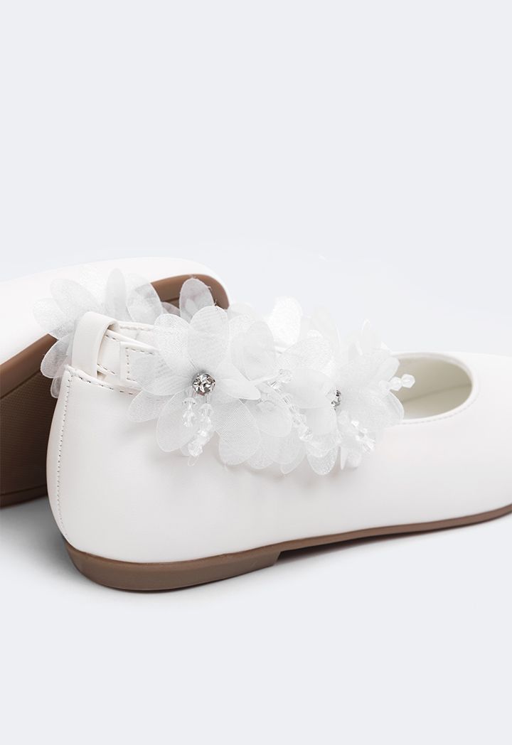 Floral Faux Pearls Flat Strap Shoes |