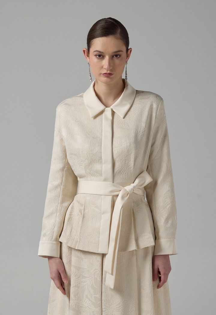 Floral Jacquard Belted Jacket |