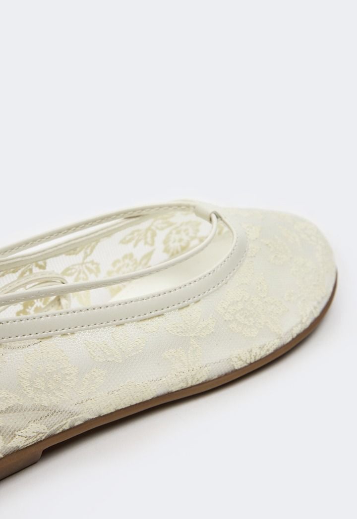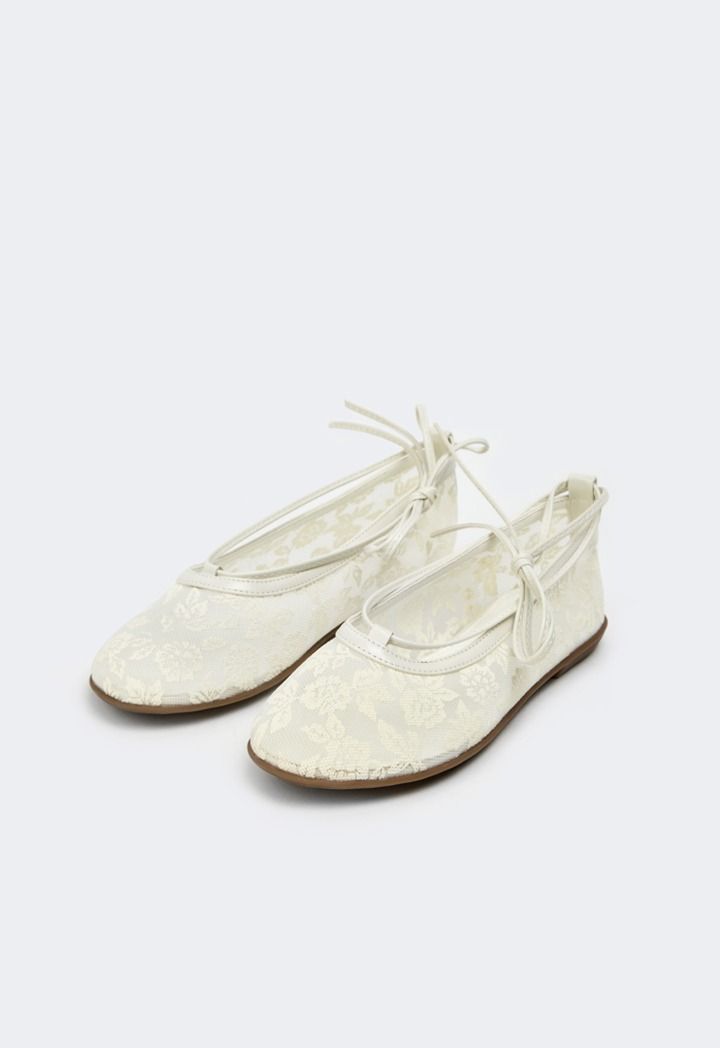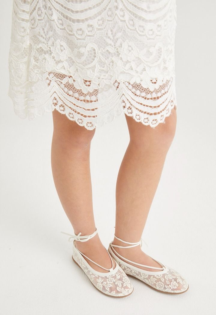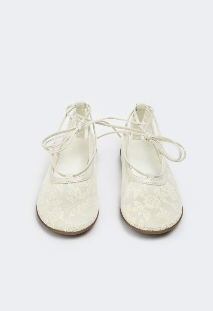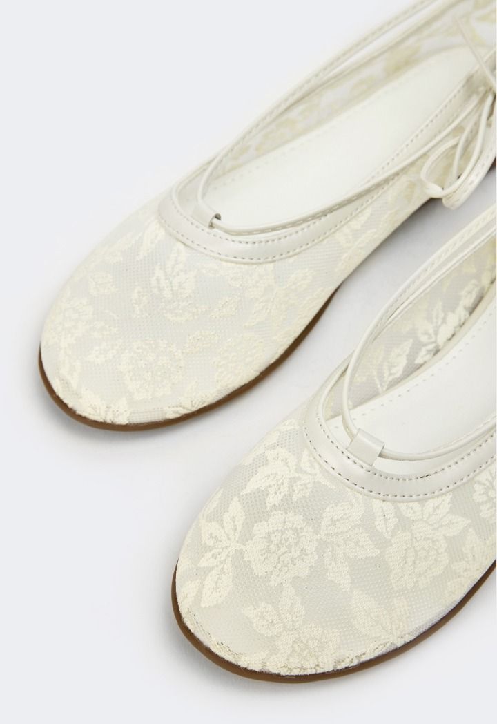 Multiply your daughters collection of shoes with this pair of floral mesh flat ballerinas.