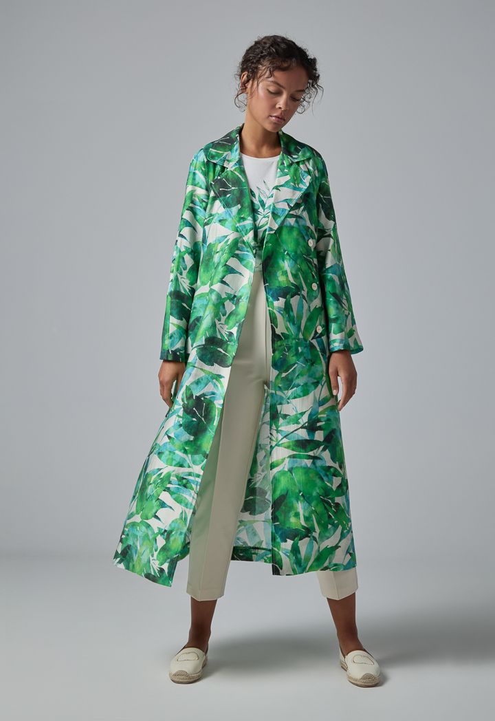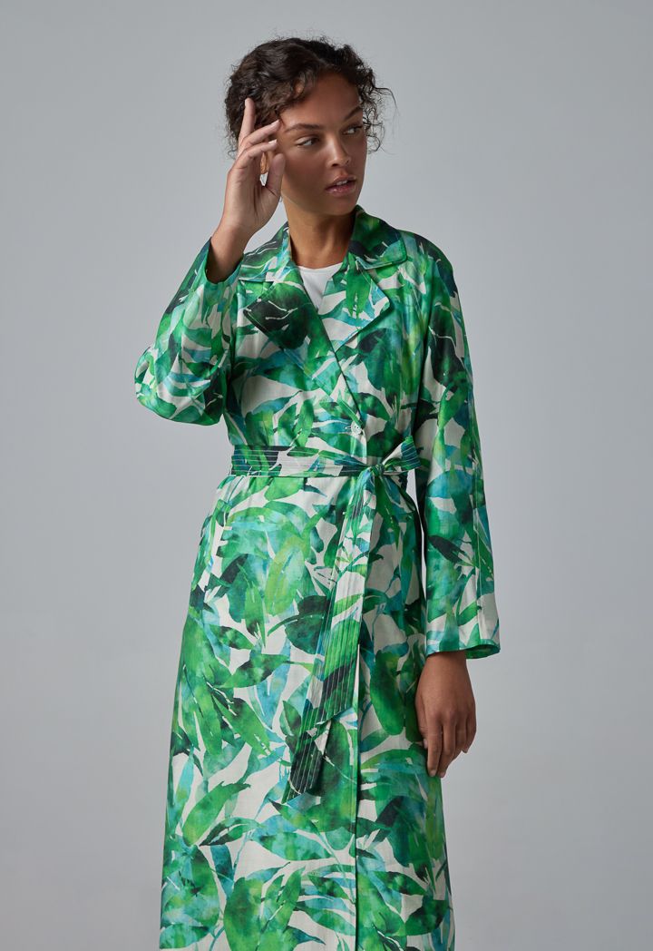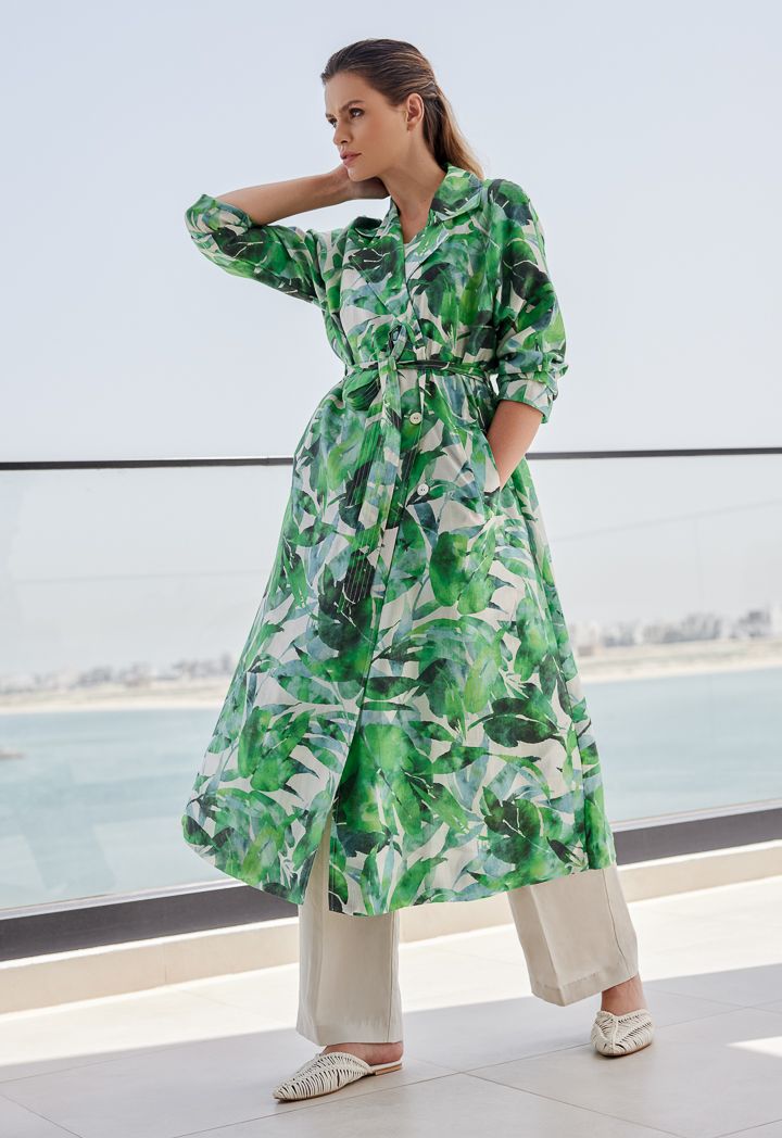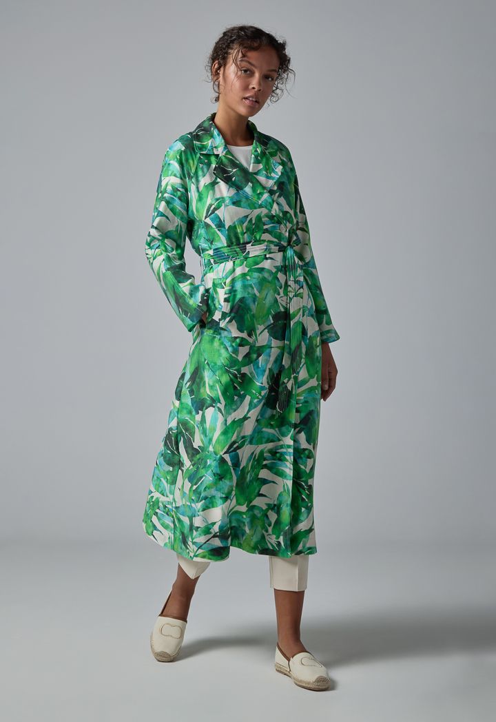 Design: Floral Print, Pockets, Logo Details, Self Fabric Belt