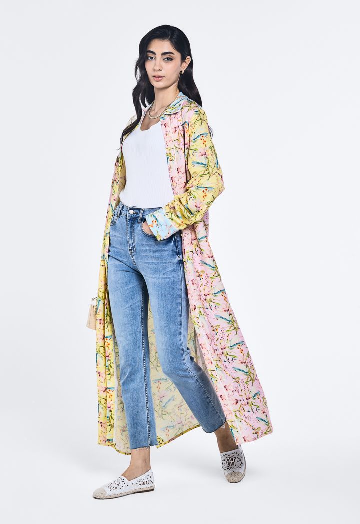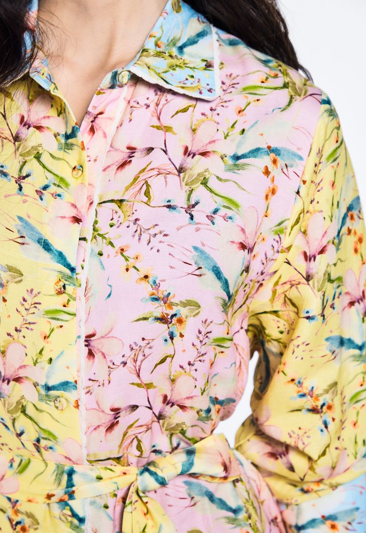 Design: Floral Print, Belted, Side Pockets, Side Slits, Lace