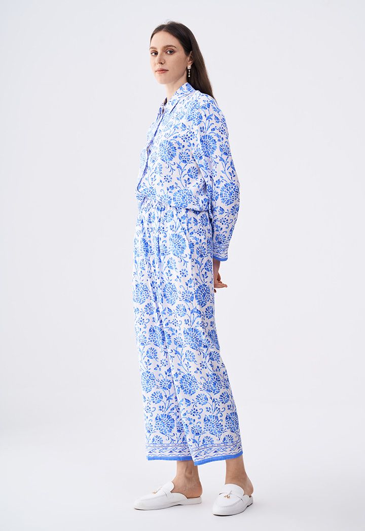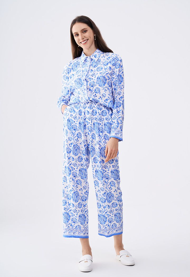 Design: Floral Print, High Waist, Straight Cut, Side Pockets