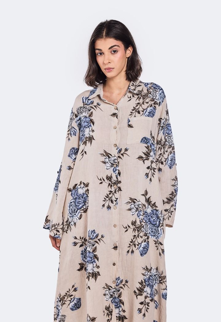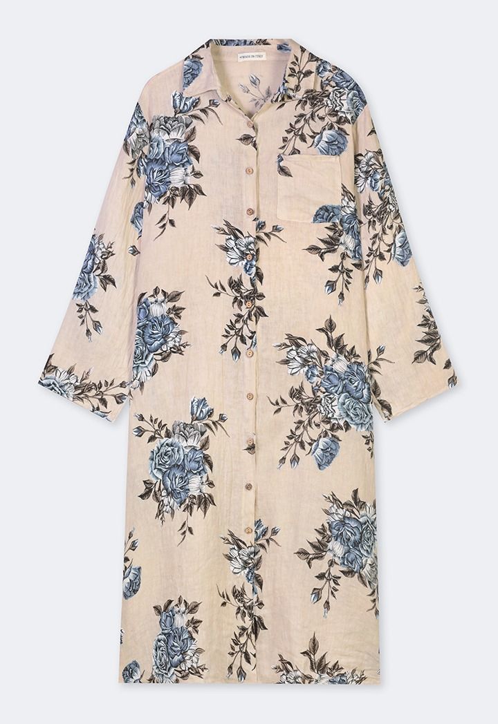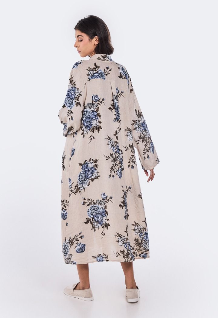 Design: Floral Print, Patch Pocket, Side Pockets, Linen, Free Size