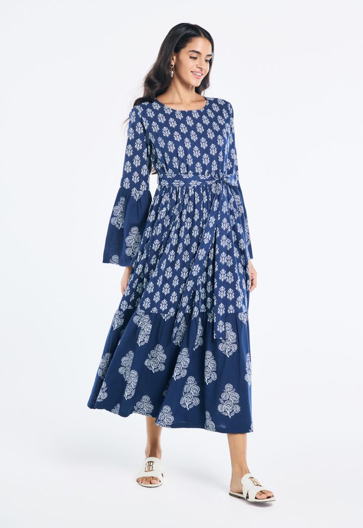 Design: Floral Print, Belted, Ruffled Hem, Side Pockets
