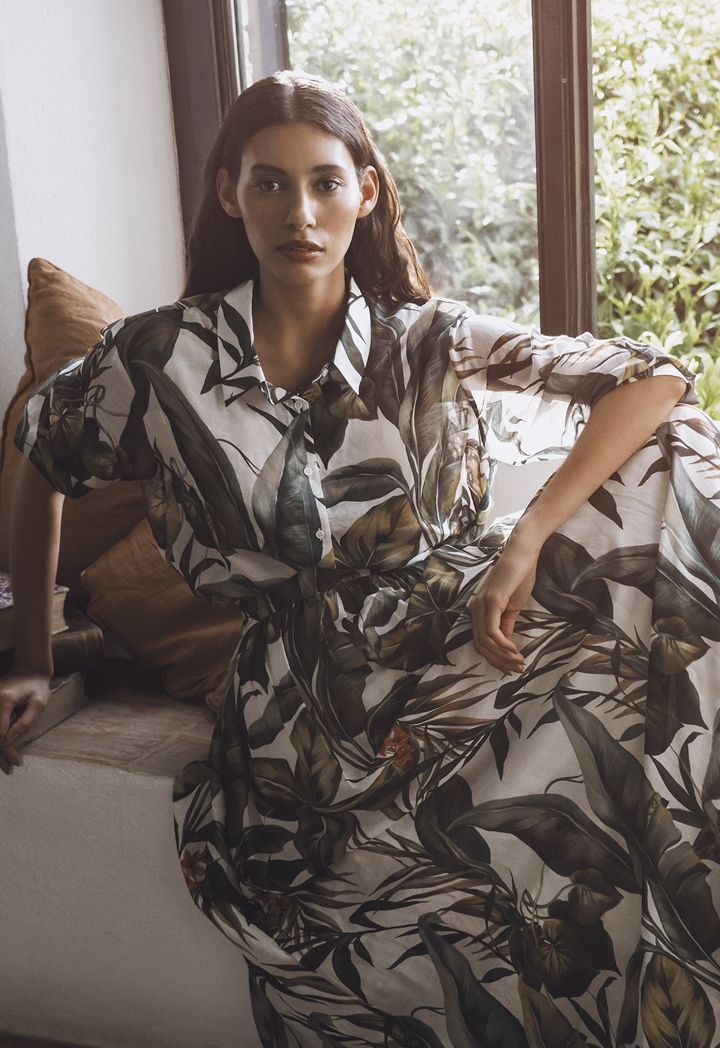 Design: Floral Print, Pleated, Flared, Attached Lining