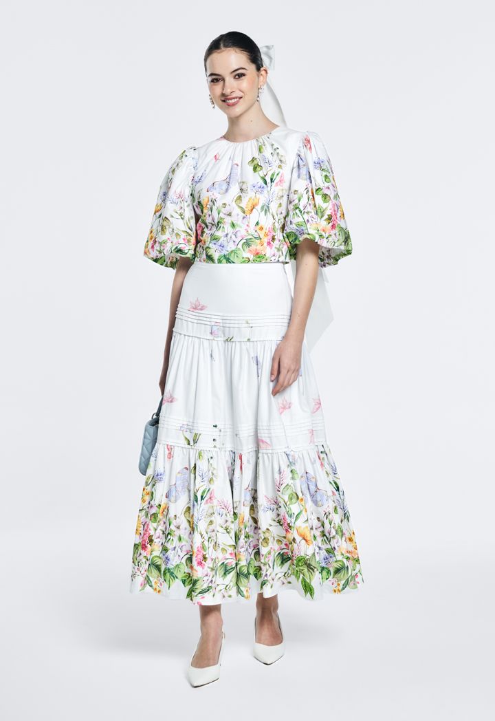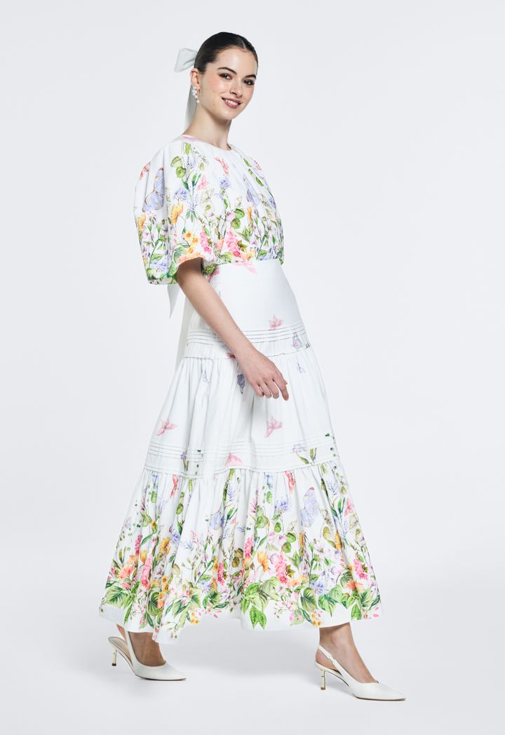 Floral Print Ruffled Hem Skirt |