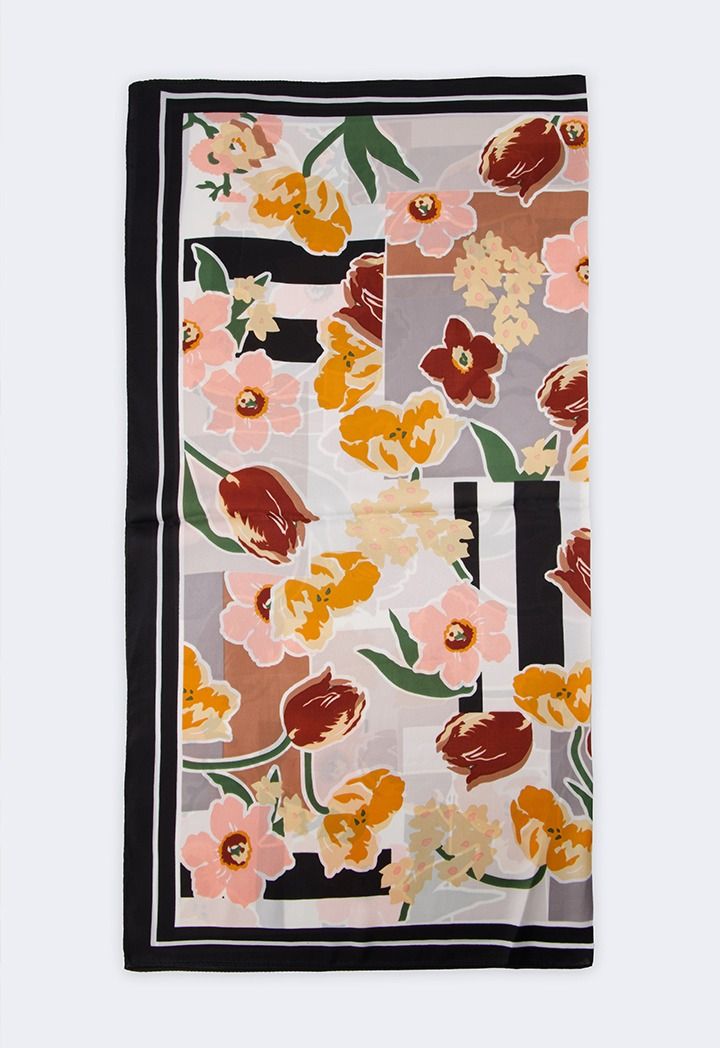 Floral Print Satin Square Scarf |