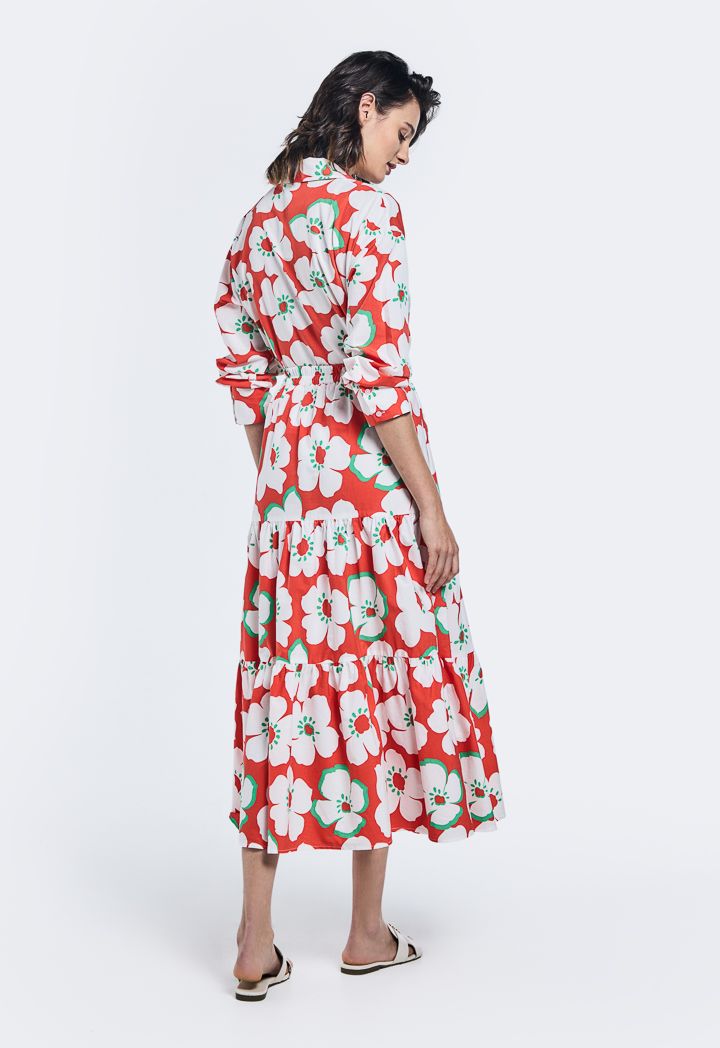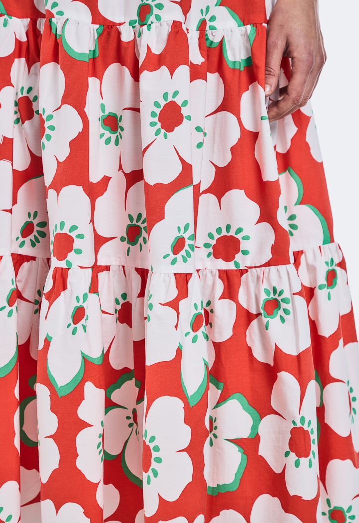Design : Floral Print, Flared, Attached Lining, Tiered