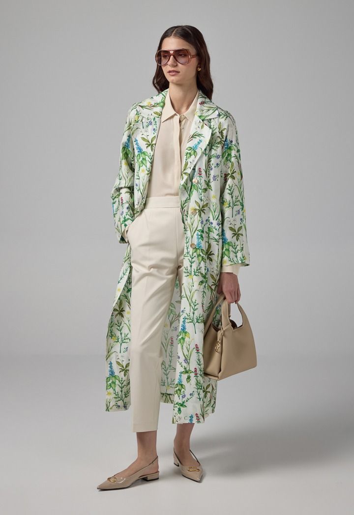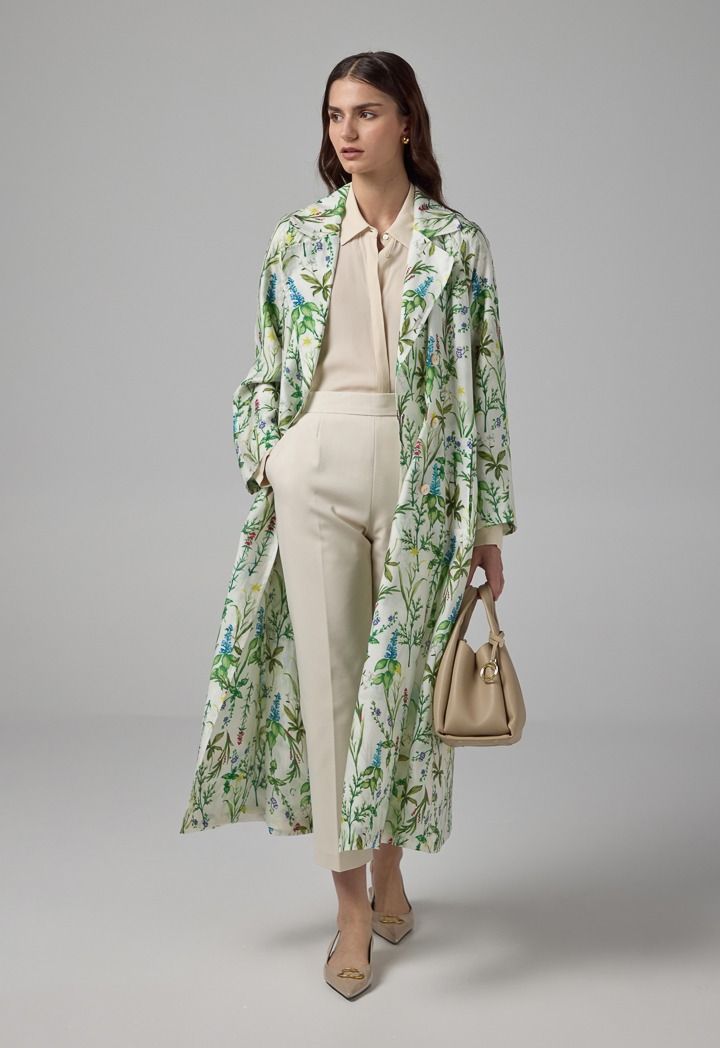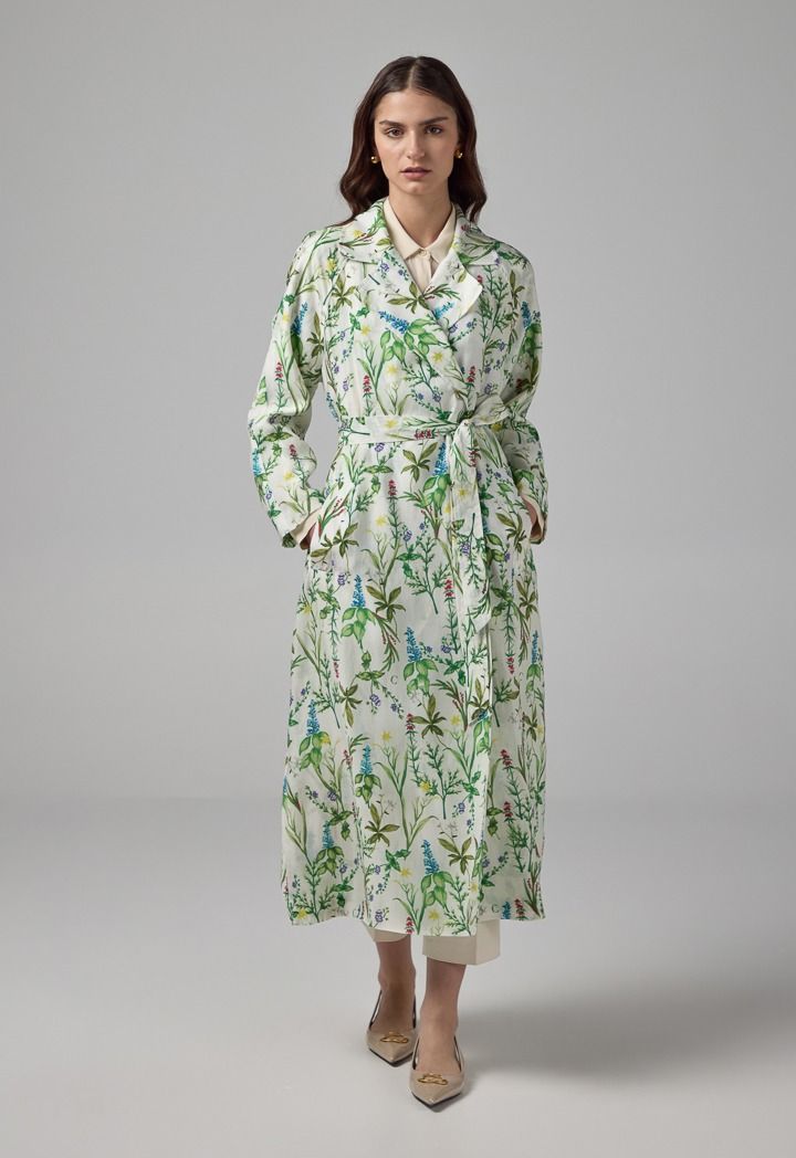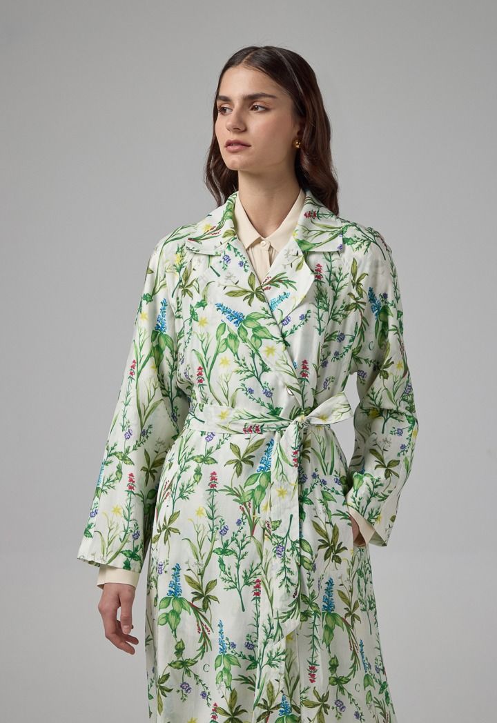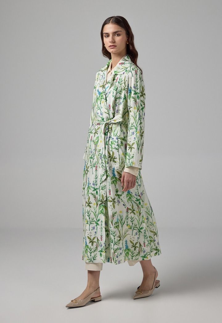 Design: Floral Printed, Side Pockets, Self Fabric Belt